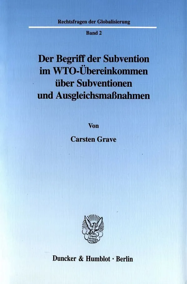 Das WTO-Übereinkommen über Subventionen und Ausgleichsmaßnahmen von 1994 regelt die Subventionstätigkeit der WTO-Mitgliedstaaten. Der Autor untersucht den Begriff der Subvention und zieht dazu rechts- und wirtschaftswissenschaftliche Erkenntnisse heran. Es erg...