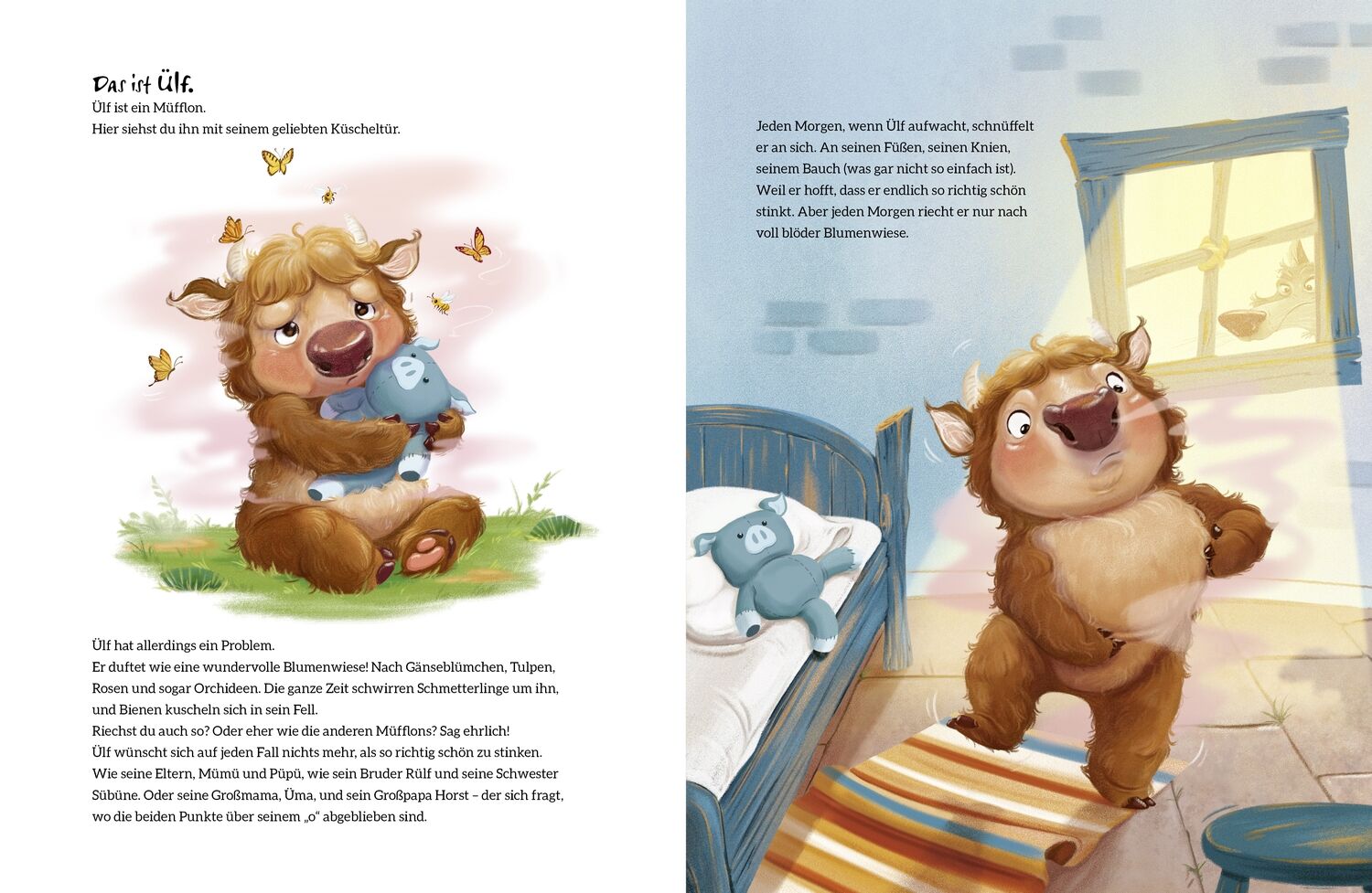 Wer müffelt denn da? Ülf ist ein Müfflon. Und Ülf hat einen Traum: Er wünscht sich nichts mehr, als so richtig schön zu stinken! So wie die anderen Müfflons. Jeden Morgen, wenn Ülf aufwacht, schnüffelt er an sich. An seinen Füßen, seinen Knien, seinem Bauch (...