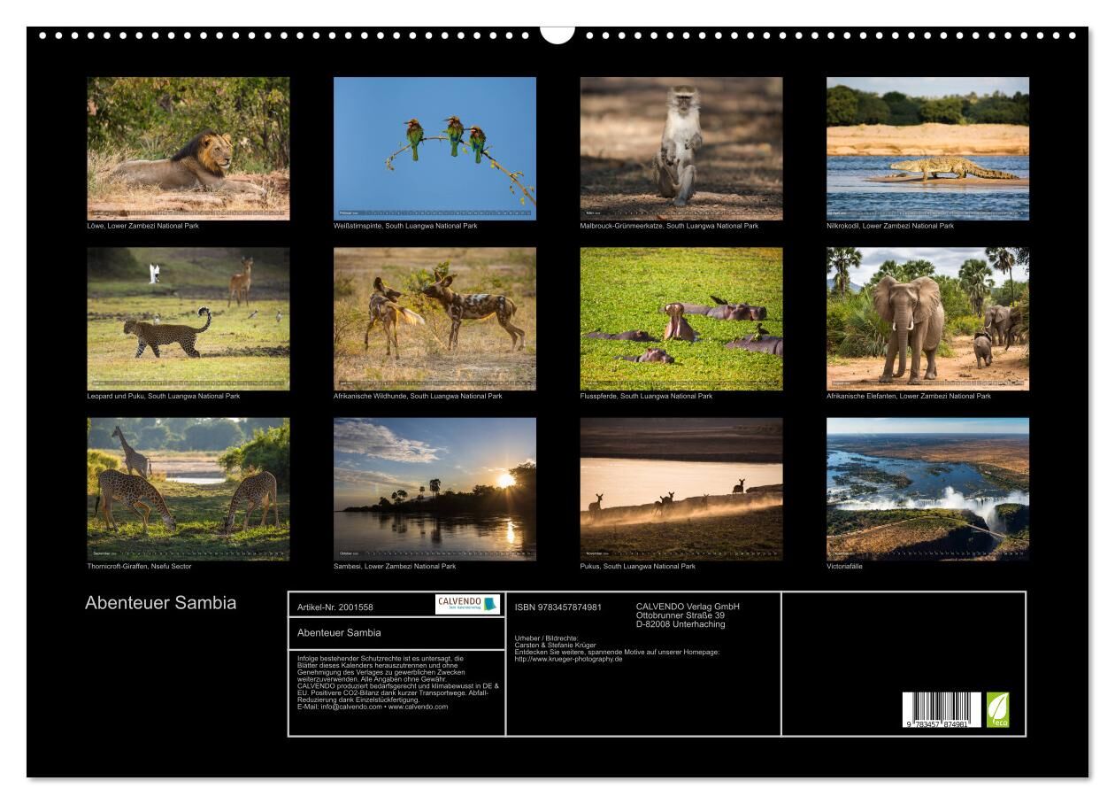 SAMBIA - Das bestgehütete Geheimnis Afrikas. Anders als die bekannten Safari-Destinationen befindet sich Sambia noch im Dornröschenschlaf. Tauchen Sie ein in die Schönheit der Natur und erleben Sie den Zauber Afrikas. Unser Kalender nimmt Sie mit auf eine Reis...