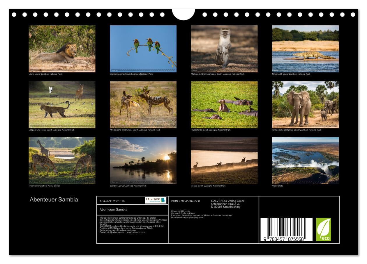 SAMBIA - Das bestgehütete Geheimnis Afrikas. Anders als die bekannten Safari-Destinationen befindet sich Sambia noch im Dornröschenschlaf. Tauchen Sie ein in die Schönheit der Natur und erleben Sie den Zauber Afrikas. Unser Kalender nimmt Sie mit auf eine Reis...