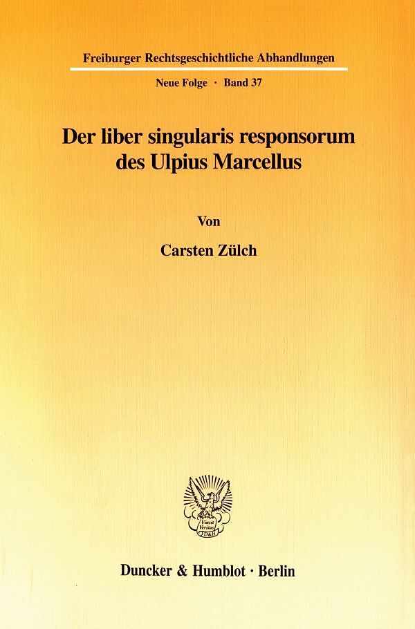Der Autor setzt die "Freiburger Reihe" textkritischer Werkuntersuchungen fort. Gegenstand ist der "liber singularis responsorum" des Ulpius Marcellus, der seine Werke in der zweiten Hälfte des zweiten Jahrhunderts und damit zur Zeit der Hochblüte der klassischen römischen Jurisprudenz verfaßte. Viele Juristen der klassischen Epoche haben "libri responsorum" geschrieben, in denen einzelne Rechtsfälle und ihre Entscheidung dargestellt sind. Der "liber singularis responsorum" des Marcellus zeichnet sich durch eine ungewöhnliche, fast stereotype Gleichförmigkeit der formalen Darstellung aus. Der überschaubare Umfang des Werks erlaubt es, sämtliche überlieferten Fragmente im Werkzusammenhang zu untersuchen und sie darüber hinaus mit Texten aus dem Hauptwerk des Marcellus, den "digesta", zu vergleichen. Mittel der Untersuchung ist die Exegese der Fragmente unter juristischen und philologischen Gesichtspunkten. Sie ergibt folgende Überlieferungsgeschichte: Der "liber singularis responsorum" wurde Anfang des vierten Jahrhunderts, möglicherweise im Rahmen einer Neuausgabe, mit einem Notenapparat versehen, der sowohl der Erläuterung wie der Einarbeitung juristischer Neuerungen diente. Die Noten wurden durchweg am Schluß der Fragmente angefügt; der vorangehende ursprüngliche Text blieb unberührt. Bei der späteren Übernahme in die Digesten Justinians haben die Fragmente nur wenige Veränderungen erfahren. Das Originalwerk des Marcellus enthielt ausschließlich wirkliche Rechtsfälle unterschiedlicher Schwierigkeit aus der Gutachterpraxis des Juristen; anders als die "digesta" verfolgte es keine akademischen Zwecke. Offenbar handelte es sich um ein Nachschlagewerk für den juristischen Praktiker. Die behandelten Rechtsfälle, die mehrheitlich aus dem Erbrecht, aber auch aus zahlreichen anderen Gebieten des Privatrechts stammen, bieten deshalb auch einen instruktiven Einblick in die Rechtswirklichkeit des Prinzipats.