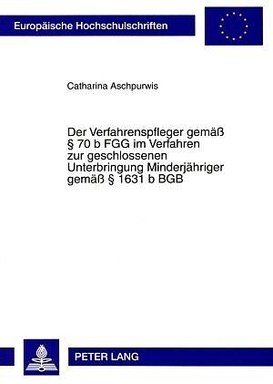 Bereits seit 1992 sieht das Gesetz den Verfahrenspfleger gemäß § 70 b FGG im Kontext von § 1631 b BGB vor. Während die Verfahrenspflegschaft gemäß § 50 FGG rege rechtswissenschaftliche und rechtspolitische Diskussionen auslöste, blieb die Auseinandersetzung mi...