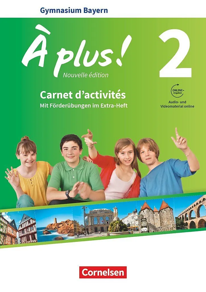Vielfältige lehrwerkbegleitende Übungen und Aufgaben mit verstärktem Dialogtraining in Rollenspielen und kooperativen Aufgaben,differenzierendem Angebot für unterschiedliche Lernvoraussetzungen,Wiederholungsübungen sowie gemischte Grammatikübungen,Aufgaben zum Hörverstehen (geschlossen, halboffen und offen) und Hörsehverstehen,Diagnose-Seiten (Fais le point) zur Überprüfung des Lernstandes nach jeder Unité undFörderübungen im eingelegten Heft zum selbstständigen Lernen und Vertiefen. Online gibt es alle Hörtexte aus dem Carnet d'activités, die Lösungen zu den Förderübungen, alle Lehrbuchtexte der Unités und Modules zum Anhören im MP3-Format sowie alle Filmsequenzen des Carnet d'activités.