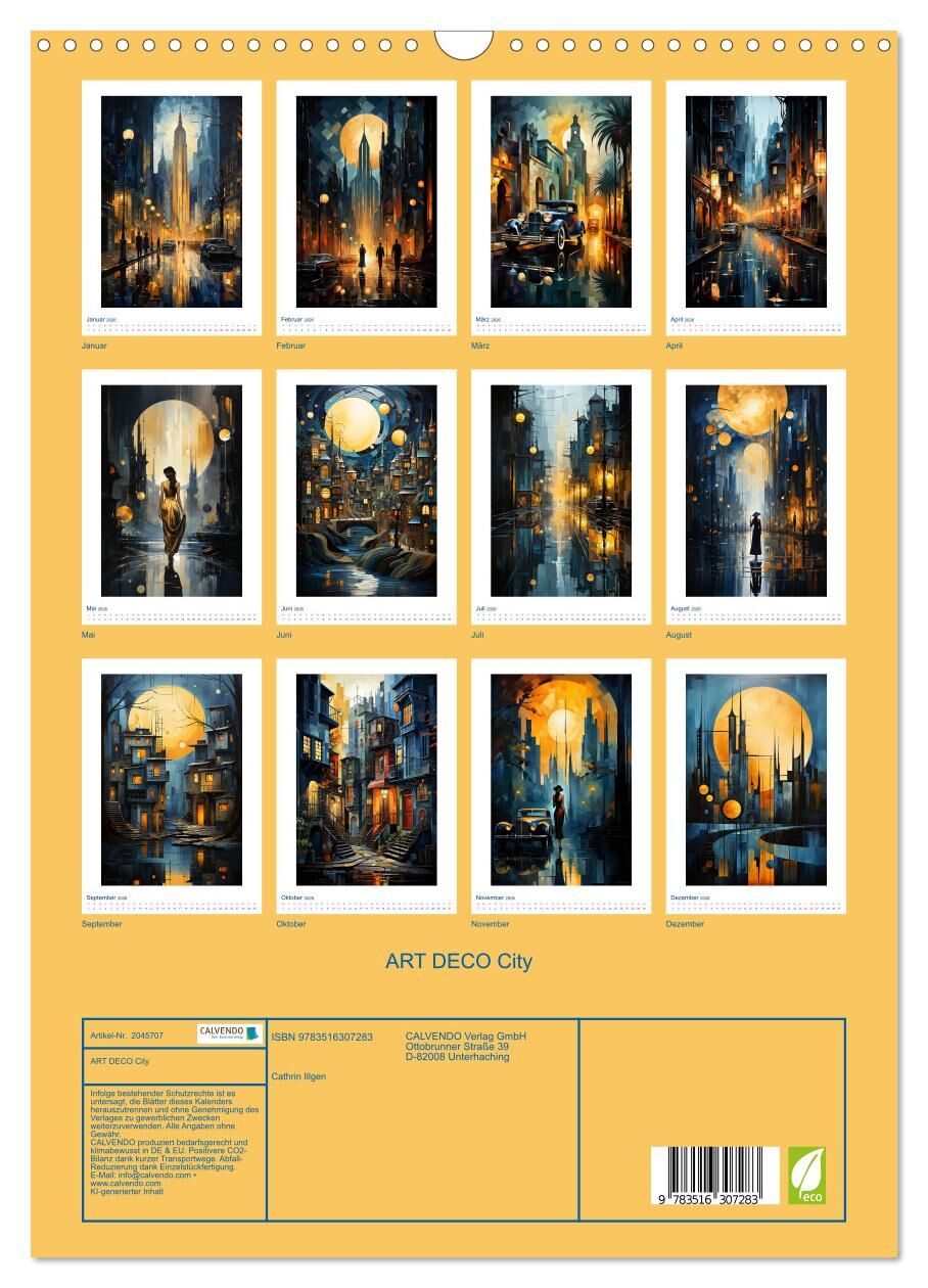 Erleben Sie die Zukunft der Kunst mit unserem urbanen KI-Kalender im Art-Deco-Stil. Unsere KI-Technologie generiert einzigartige Bilder, die die Schönheit der Stadt einfangen und in einem zeitlosen Stil präsentieren. Jeder Monat ist eine Hommage an die Archite...
