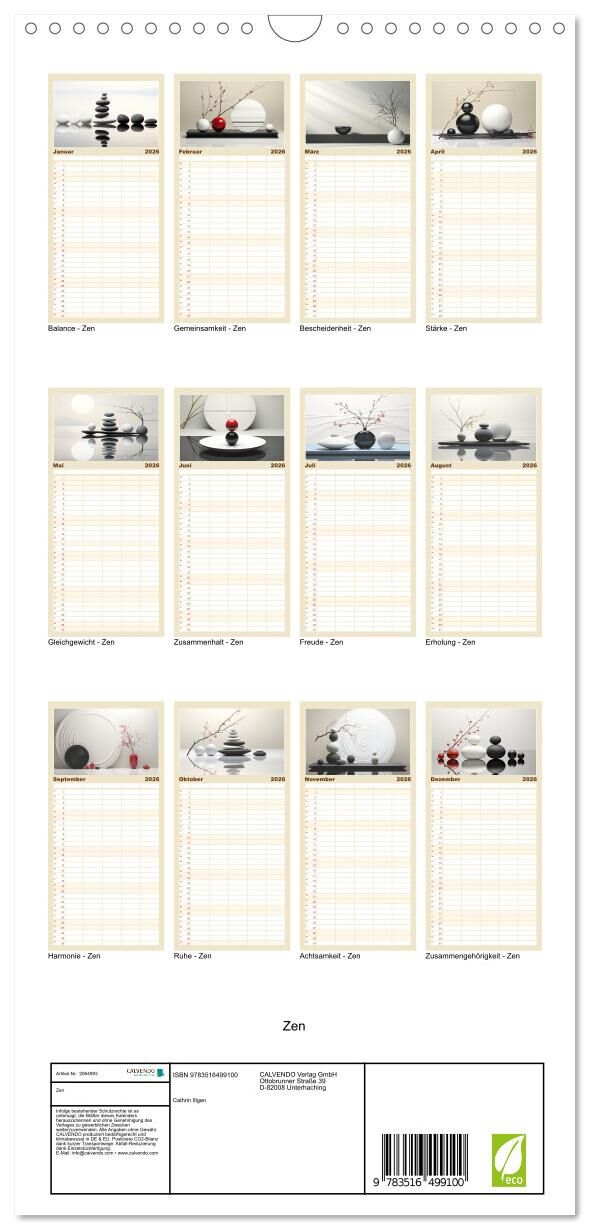Zen ist mehr als nur eine Philosophie, es ist eine Lebenshaltung. Eine Lebenshaltung, die du mit diesem Kalender jeden Tag praktizieren und erleben kannst. Dieser Kalender zeigt dir 12 atemberaubende Bilder, die von einer künstlichen Intelligenz generiert wurd...