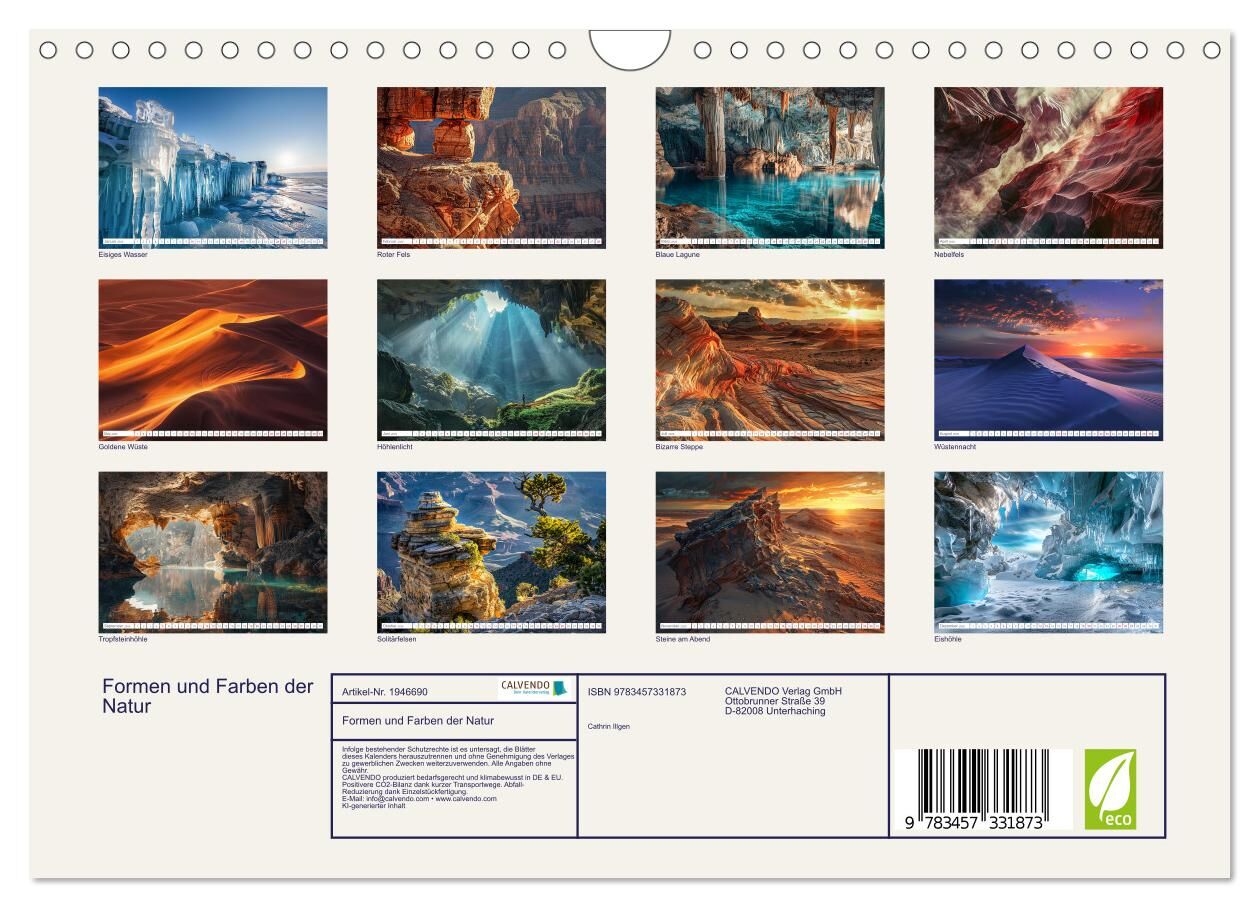 Tauchen Sie ein in die atemberaubende Schönheit der Natur mit unserem einzigartigen neuen Kalender. Jeder Monat präsentiert Ihnen faszinierende Bilder, die von künstlicher Intelligenz in fotorealistischer Qualität geschaffen wurden. Von majestätischen Felsform...