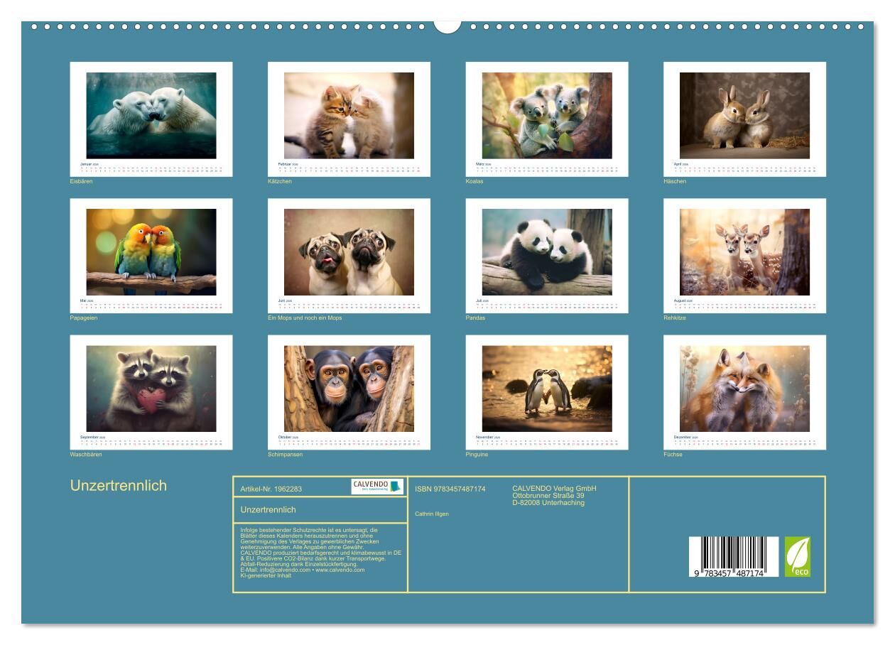 Unzertrennlich (hochwertiger Premium Wandkalender 2026 DIN A2 quer), Kunstdruck in Hochglanz
