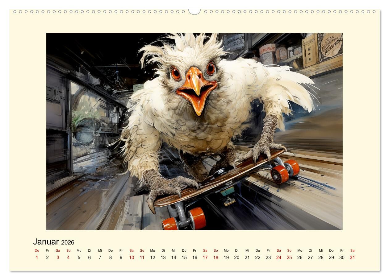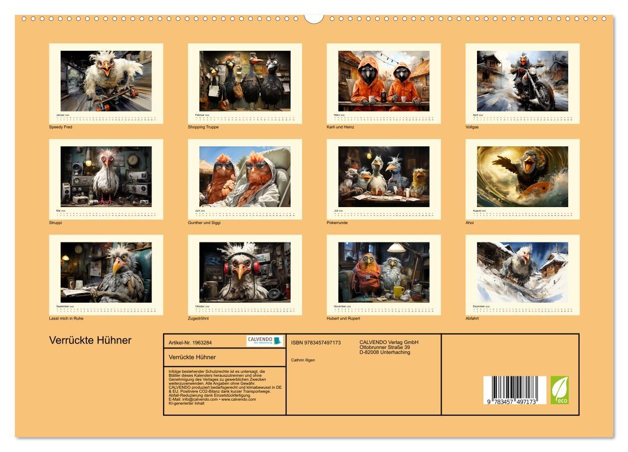Du magst Hühner und andere gefiederte Freunde? Du suchst nach einem Kalender, der dich jeden Monat zum Lachen bringt? Dann ist dieser Kalender genau das Richtige für dich! Dieser Kalender zeigt dir 12 lustige Bilder, die von einer künstlichen Intelligenz gener...