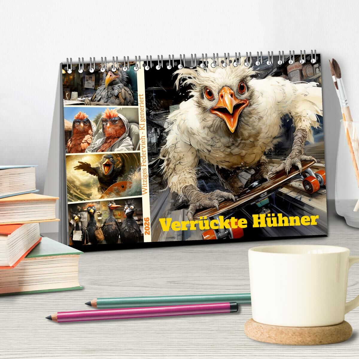 Verrückte Hühner (Tischkalender 2026 DIN A5 quer), CALVENDO Monatskalender