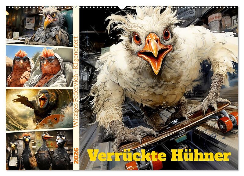 Verrückte Hühner (Wandkalender 2026 DIN A2 quer), CALVENDO Monatskalender