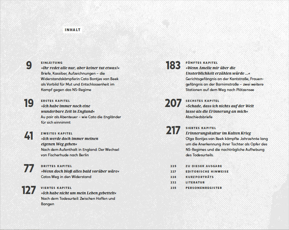 »Grüße alles von mir, das ich so liebte«, schreibt die 22-jährige Cato Bontjes van Beek am 21. Januar 1943 in einem Brief an ihre Mutter, kurz nach ihrer Verurteilung durch das Reichsgericht Berlin. Einige Monate später, am 5. August 1943, wird sie als Widers...