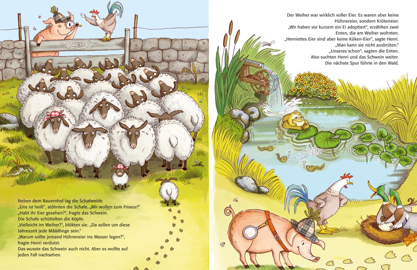Eine spannende Eier-Suche auf dem Bauernhof, für Kinder ab 4 Jahren Endlich ist der Frühling da! Die Vögel zwitschern, in Henris Garten sprießen die Blumen und Henriette legt ein Ei nach dem anderen. Aber was ist das? Eines Morgens sind die Eier alle weg. Spu...