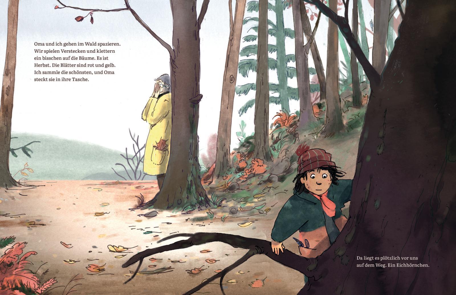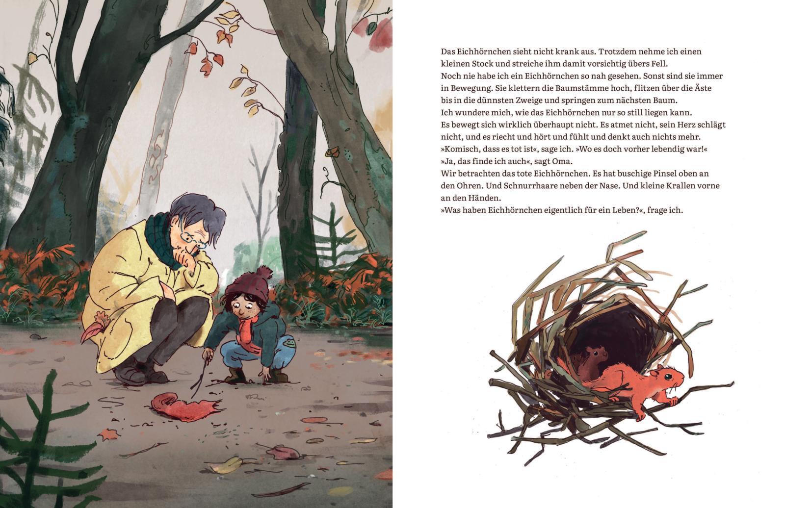 Gemeinsam und auf Augenhöhe mit Kindern über Tod und Trauer sprechen. Berührendes Bilderbuch ab 5 Jahren. Ein Kind und seine Oma finden beim Spaziergang durch den Wald ein totes Eichhörnchen. Was wohl mit ihm passiert ist? Ob es krank war? Oder schon ganz alt...