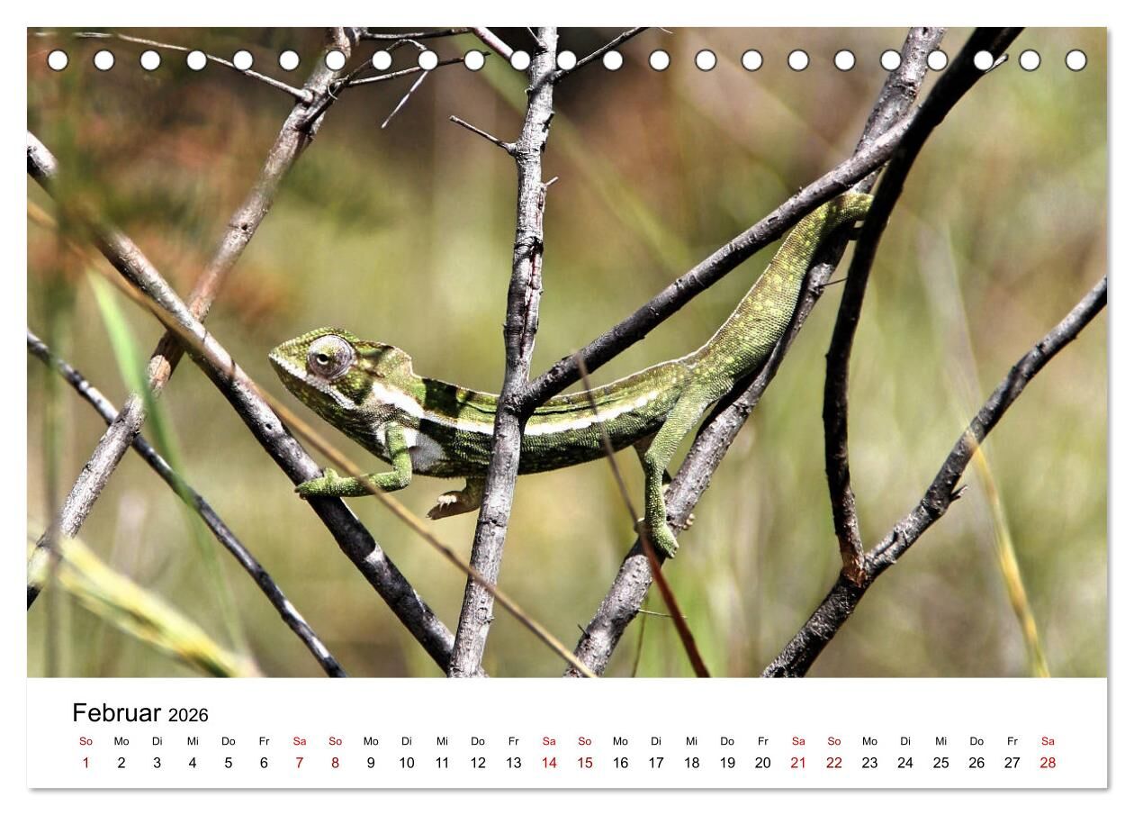 Madagaskar ist weltberühmt als Biodiversitäts-Hotspot. Ob niedliche Lemuren, farbenfrohe Chamäleons, gut getarne Geckos oder ungewöhnliche Insekten. Der Kalender zeigt einige der faszinierenden Tiere, für die Madagaskar bekannt ist.