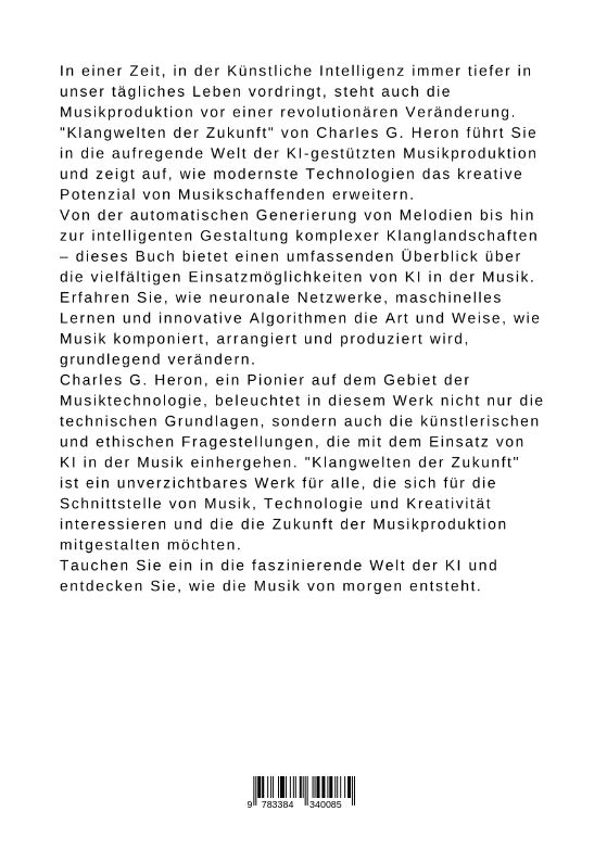 In einer Zeit, in der Künstliche Intelligenz immer tiefer in unser tägliches Leben vordringt, steht auch die Musikproduktion vor einer revolutionären Veränderung. "Klangwelten der Zukunft" von Charles G. Heron führt Sie in die aufregende Welt der KI-gestützten...