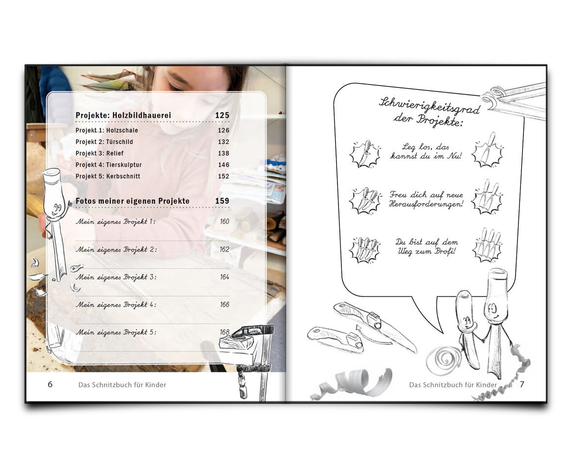 Das alles erwartet euch in diesem Schnitzbuch: