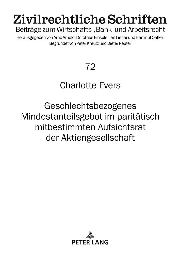 Die Untersuchung befasst sich mit der verfassungs- und unionsrechtlichen Vereinbarkeit der zwingenden Geschlechterquote, der Auslegung der aktien- und mitbestimmungsrechtlichen Normen zur Berechnung der Quote in den beiden Erfüllungsmodi sowie zum Widerspruch...