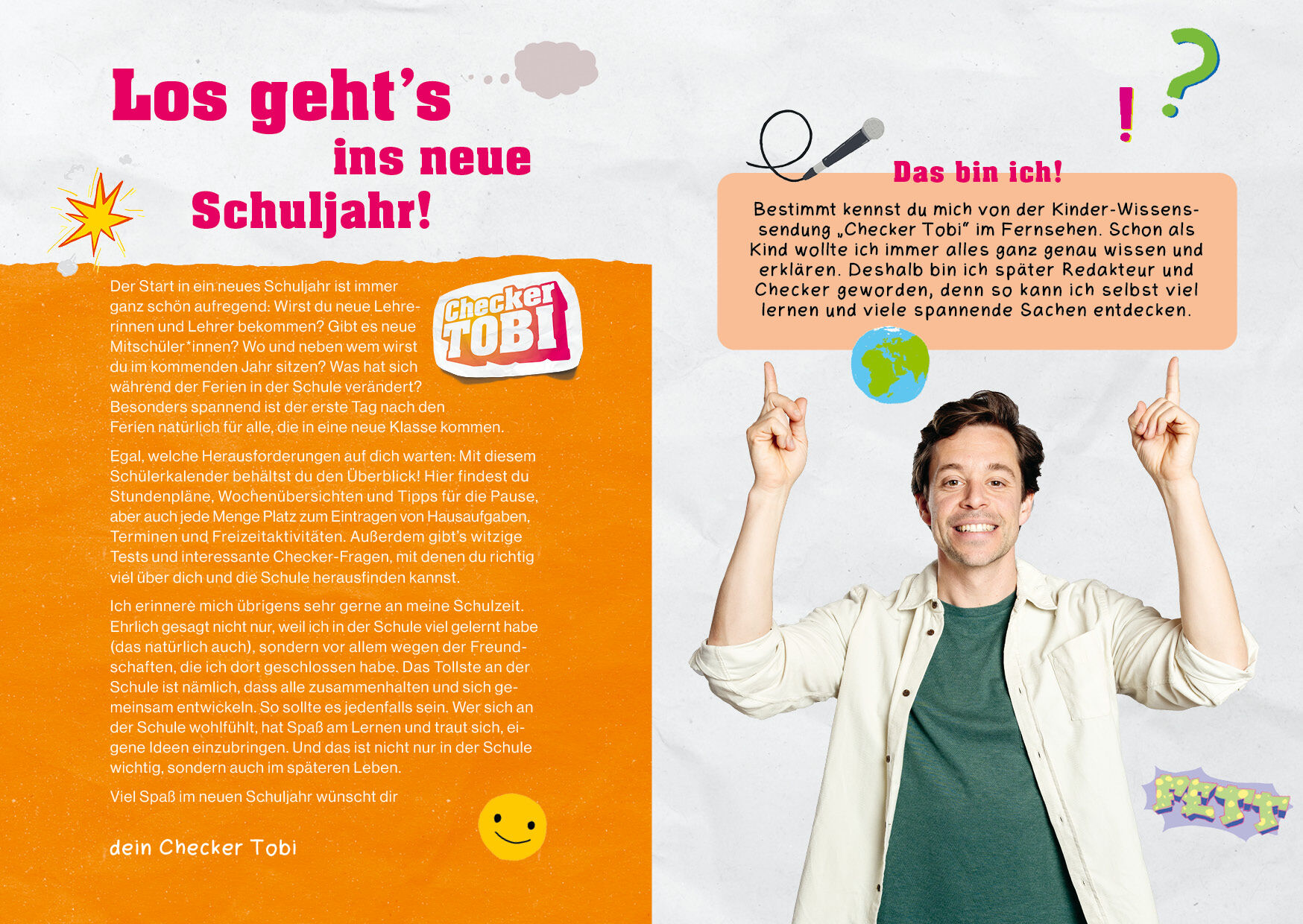 Der perfekte Begleiter für alle Fans der beliebten KiKA-Wissenssendung Der erste Schülerkalender von Checker Tobi bringt dich perfekt organisiert durchs neue Schuljahr. Hier findest du alles, was du für den Schulalltag benötigst: Neben genug Platz für Klausur...