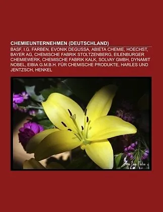 Quelle: Wikipedia. Seiten: 185. Kapitel: BASF, I.G. Farben, Evonik Degussa, Abieta Chemie, Hoechst, Bayer AG, Chemische Fabrik Stoltzenberg, Eilenburger Chemiewerk, Chemische Fabrik Kalk, Solvay GmbH, Dynamit Nobel, Eibia G.m.b.H. für chemische Produkte, Harle...
