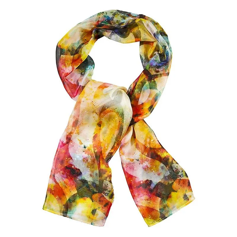 Dieses wunderschöne Chiffontuch ist ein tolles Accessoire für passionierte Musikliebhaber. Das farbenfrohe Design ist ein wahrer Blickfang und peppt jedes Outfit stilsicher auf. Zahlreiche Violinschlüssel tummeln sich großflächig auf dem weichen Chiffon und er...