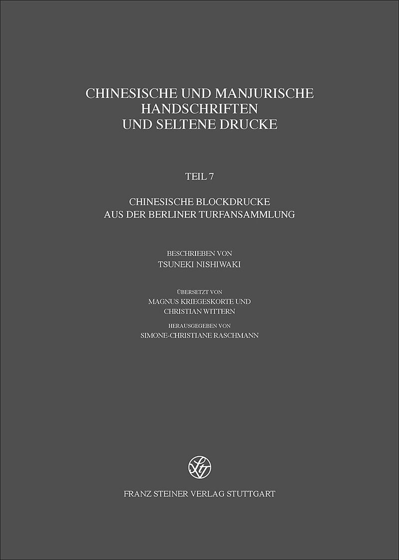 Der siebte Teilband des Katalogs der chinesischen und manjurischen Handschriften und seltenen Drucke beschreibt in 1282 Katalogeinträgen die chinesischen Blockdrucke in den Berliner Turfansammlungen (Depositum der Berlin-Brandenburgischen Akademie der Wissens...