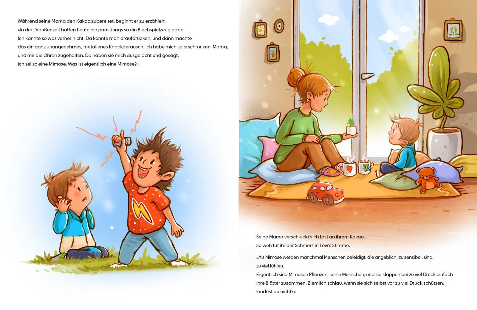 Levi ist ein fröhlicher Junge mit feinen Antennen: Nach lauten Tagen braucht er Ruhe und Zeit, um das Erlebte zu verarbeiten. Seine Eltern kennen das doch viele Kinder im Kindergarten noch nicht. Ein gemeinsames Sinnes-Experiment im Kindergarten mit Kopfhörer...