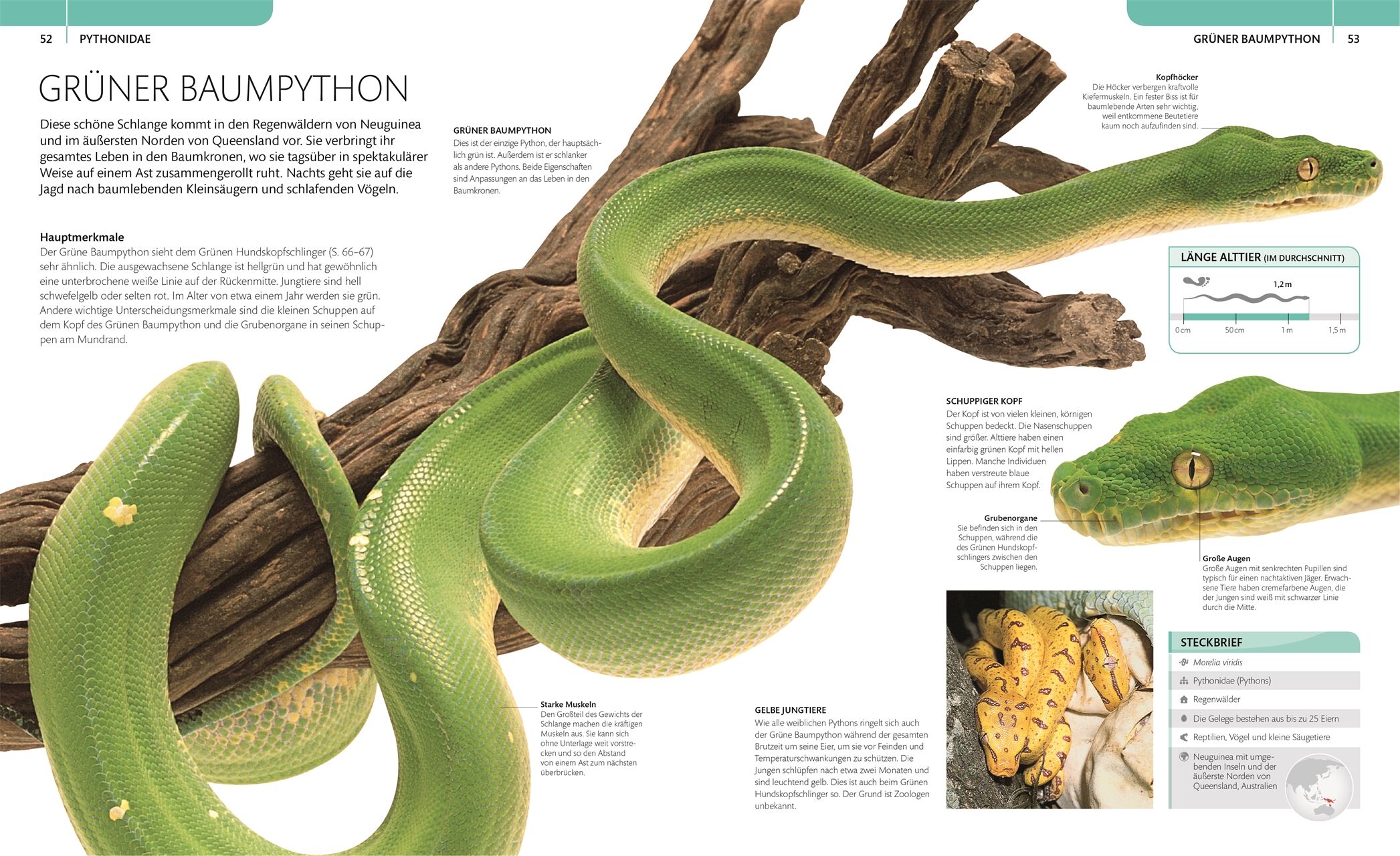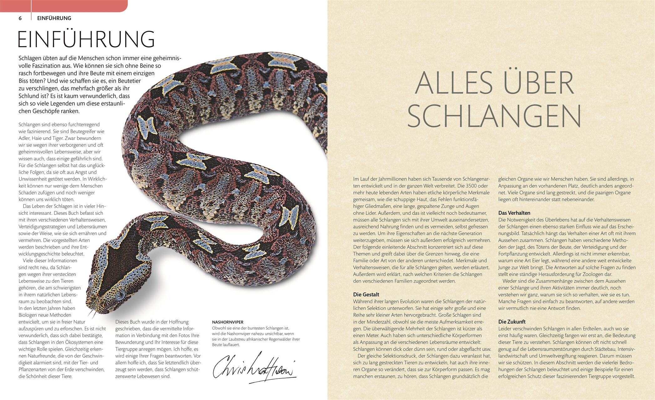 Das ultimative Buch für Reptilienliebhaber! Diese umfassende Enzyklopädie stellt die wichtigsten Schlangenarten der Welt vor und lässt ihre Schönheit und Einzigartigkeit lebendig werden. Über 60 Artenporträts sind enthalten, die jeweils umfangreiche Informatio...