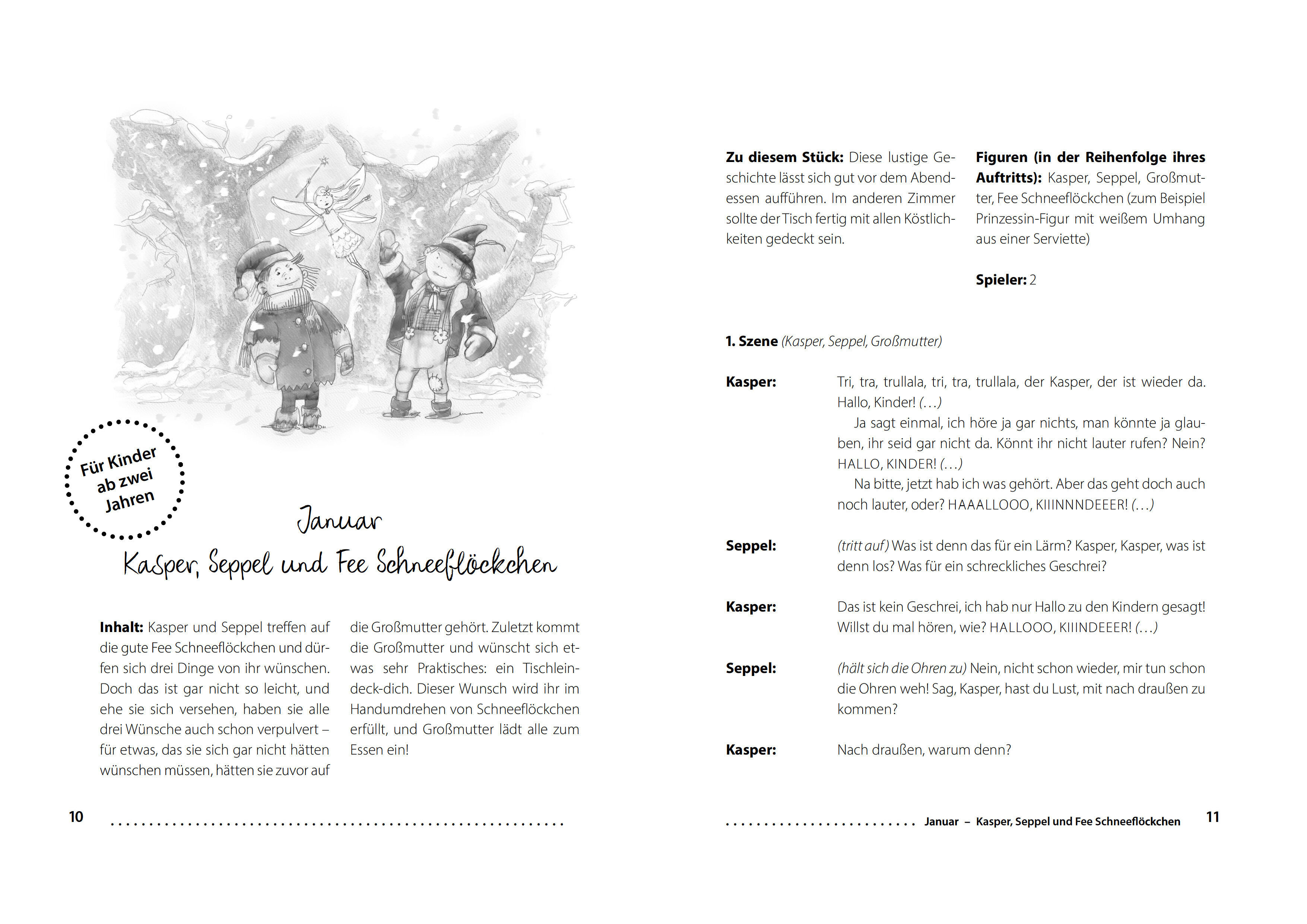 12 lustige und spannende Kasperlestücke rund ums Jahr bieten garantierten Spielspaß, wenn Kasper und Seppel auf die Fee Schneeflöckchen treffen, ein Osterei verloren geht oder die Prinzessin mit Kasper Weihnachten feiert. Spielerisch wird durch das Einbinden d...