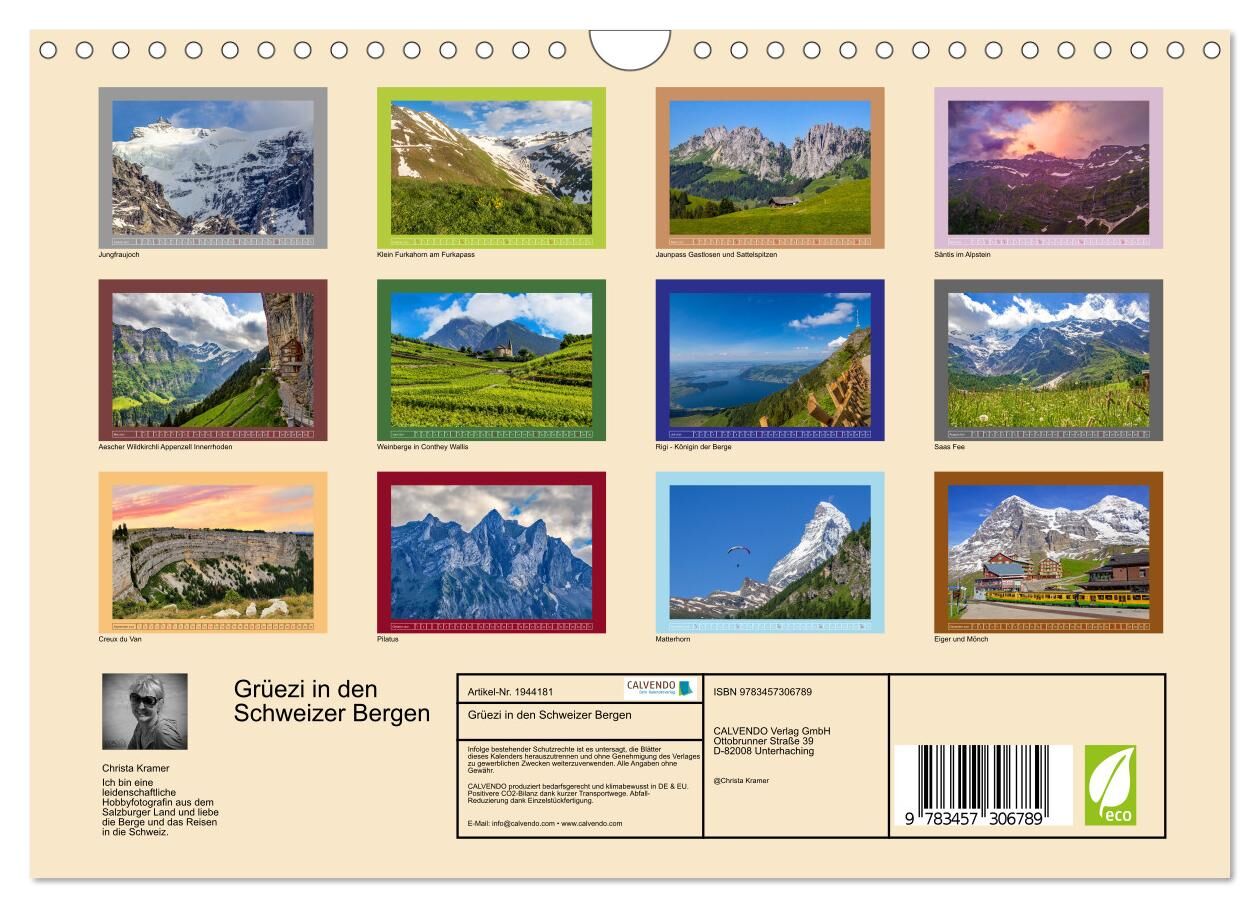Grüezi in den Schweizer Bergen (Wandkalender 2026 DIN A4 quer), CALVENDO Monatskalender