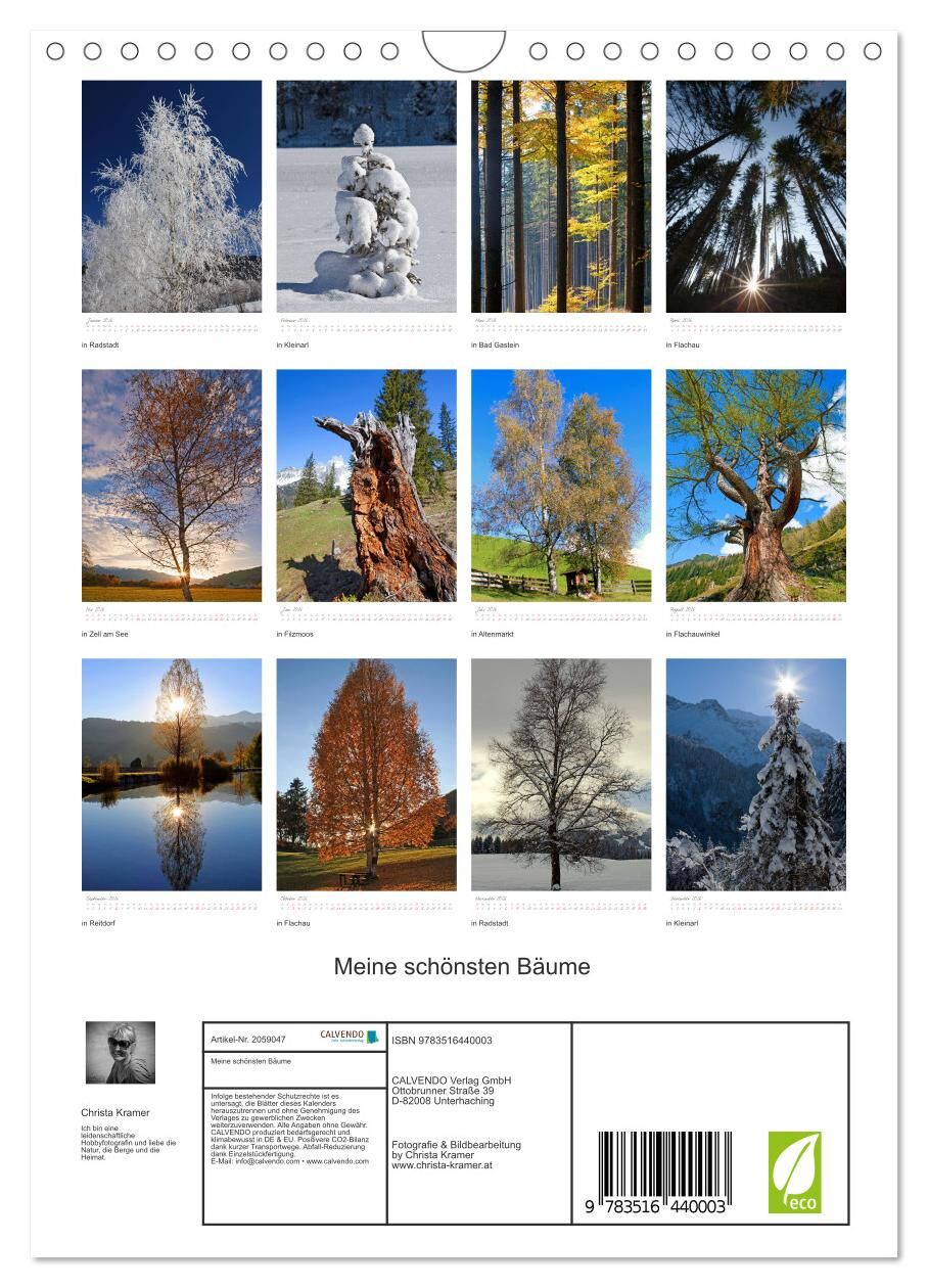 In diesem Kalender zeige ich Ihnen die schönsten Bäume in den 4 Jahreszeiten! Ob ein tiefverschneiter Fichtenbaum, eine leuchtende Birke, oder ein toter Baum mit lachendem Gesicht, es ist für Jedermann ein passender Baum für dabei!