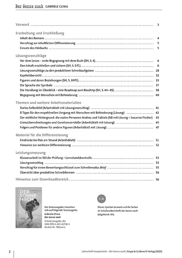 Der Sonne nach Gabriele Clima Lehrerheft Hauptschule
