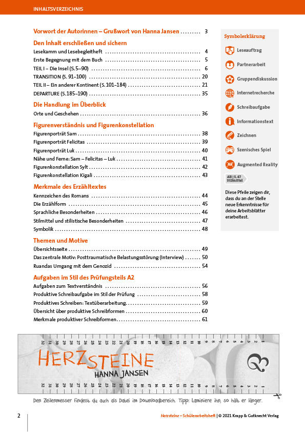 Unser Schülerarbeitsheft begleitet bei der Erschließung des Romans Herzsteine von Hanna Jansen und dessen Themen. Das Unterrichtsmaterial mit abwechslungsreichen Aufgaben, Arbeitsblättern, Hilfestellungen und einer schülernahe Gestaltung mit Illustrationen fö...