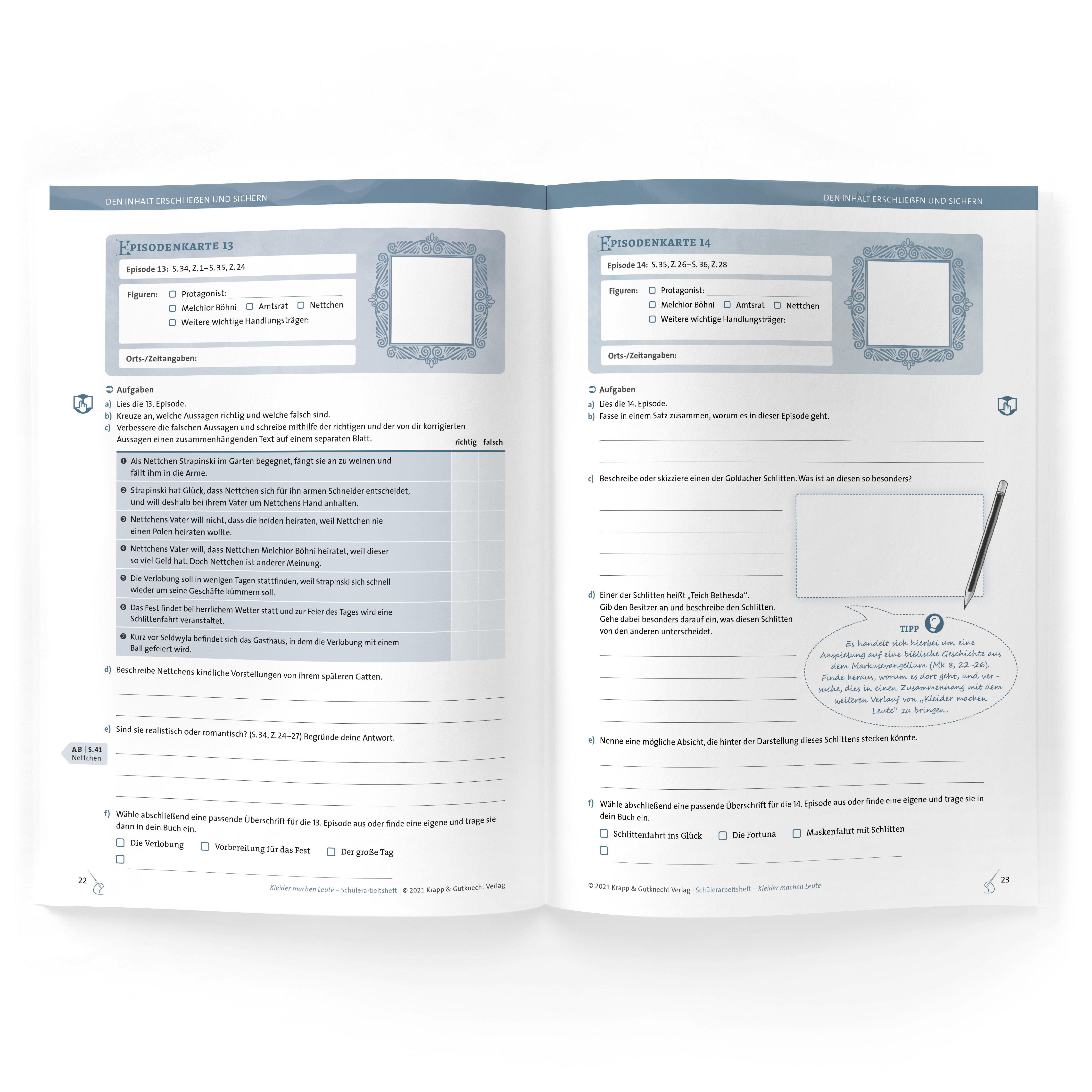 Unser Schülerarbeitsheft begleitet bei der Erschließung der Novelle Kleider machen Leute von Gottfried Keller und dessen Themen. Das Unterrichtsmaterial mit abwechslungsreichen Aufgaben, Arbeitsblättern, Hilfestellungen und einer schülernahe Gestaltung mit Il...