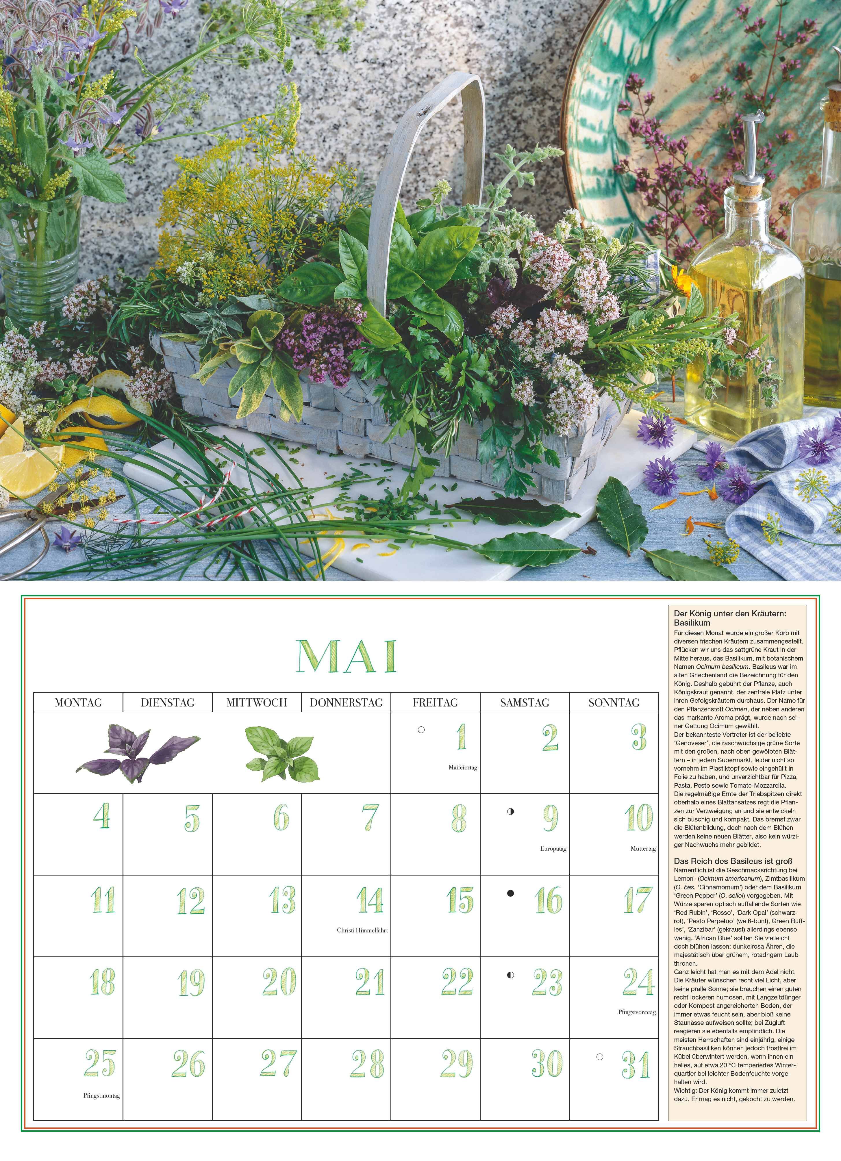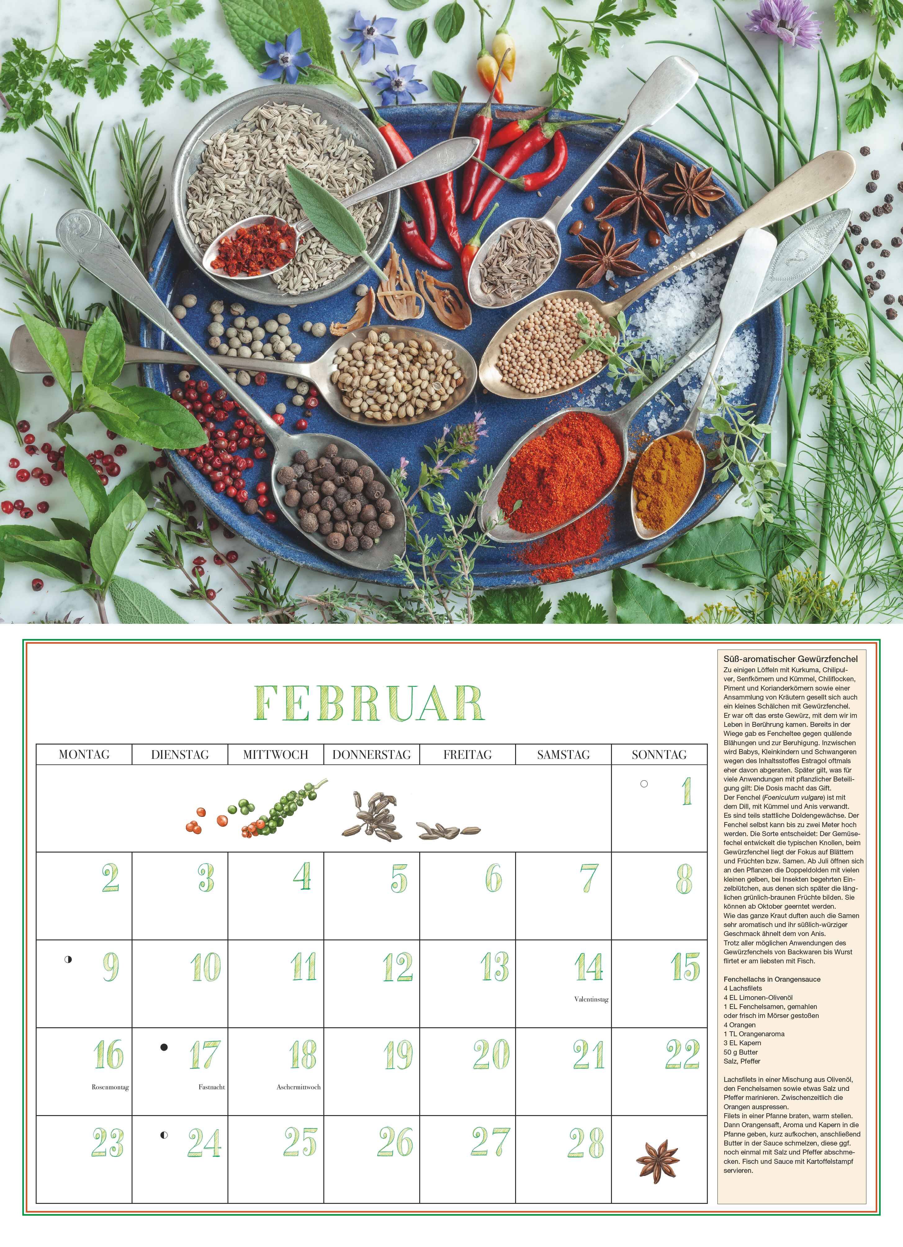 Aromatische Kräuter für jeden Monat dieser stilvolle DUMONT Broschürenkalender 2026 im Format 42 x 29 cm bringt Frische und Inspiration in Küche und Garten. Highlights: 12 Monatsblätter mit Kräuterporträts, Rezepten & Tipps Stimmungsvolle Farbfotografien ...