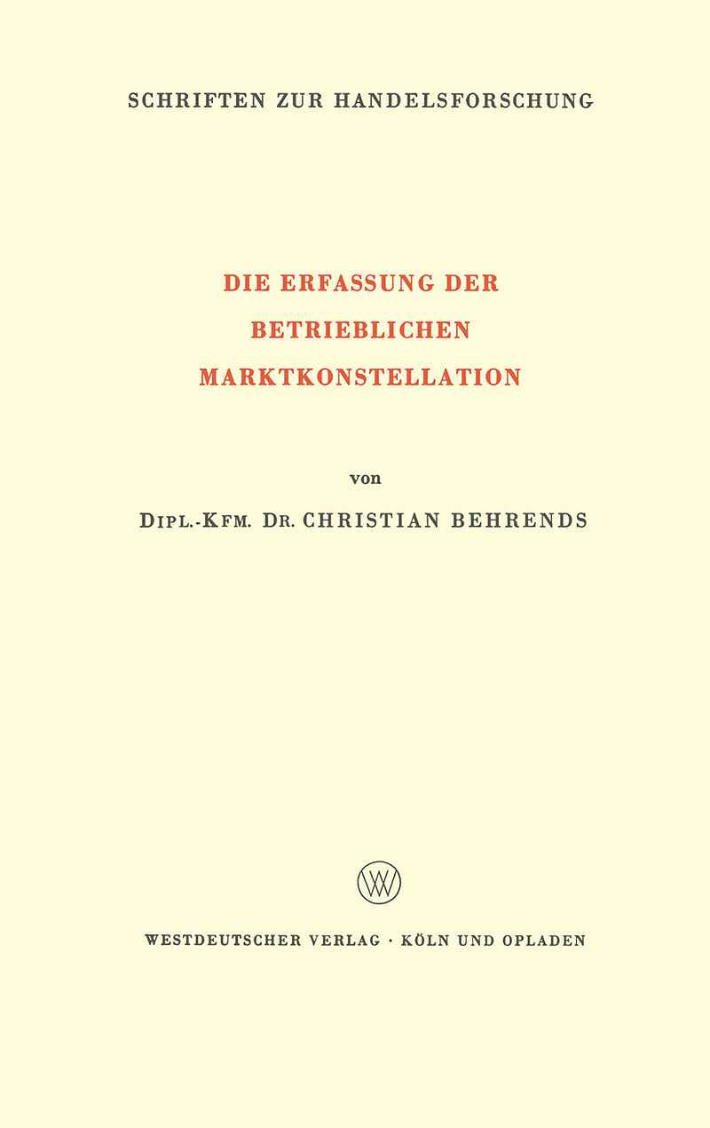 Inhalt Einführung.- Entwicklungslinien der betriebswirtschaftlichen Marktlehre.- Hauptteil.- I. Die Grundlagen der betrieblichen Markterfassung.- II. Die Phasen der betrieblichen Markterfassung.- Schluß.- Komplexität und Bedeutung betrieblicher Marktmodelle....