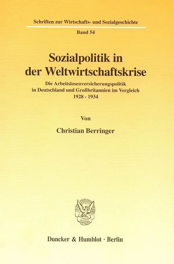 In den Jahren von 1928 bis 1934 setzten in Deutschland und Großbritannien die bedrückenden Bedingungen von Weltwirtschaftskrise und Massenarbeitslosigkeit den Rahmen für die Entscheidungen und Entwicklungen in der Sozialpolitik. In der vorliegenden Untersuchun...