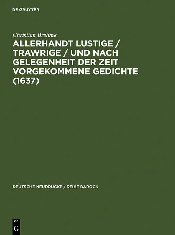 The book series German Reprints re-publishes texts from Baroque literature in facsimile reproductions of contemporary editions. Each volume also contains indexes, bibliographies and a postscript detailing the transmission of the text and its status and locatio...
