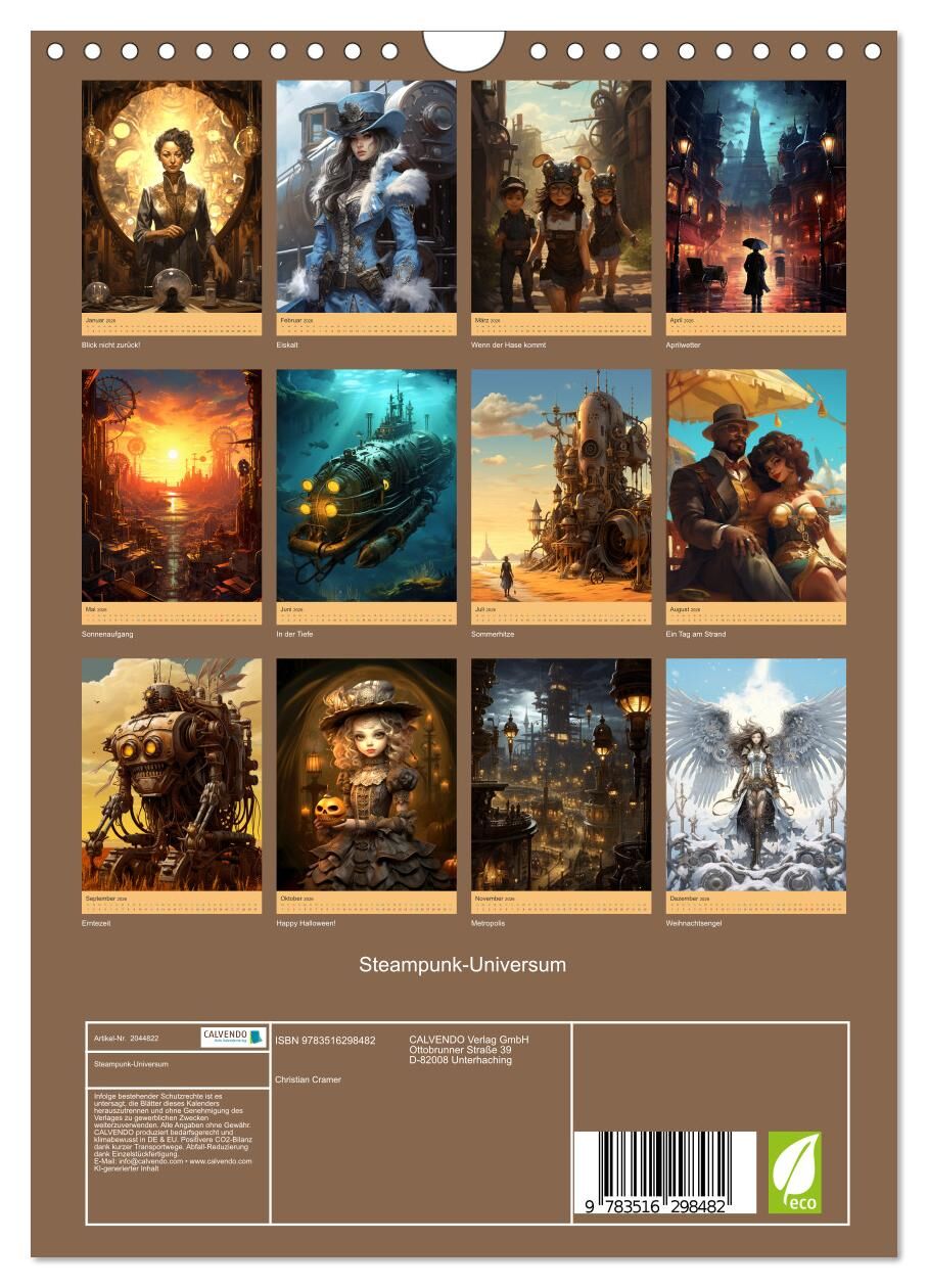 Tauchen Sie ein in eine faszinierende Welt, in der Dampf und Technologie auf eine einzigartige Art verschmelzen. Unser exquisiter Steampunk-Kalender entführt Sie Monat für Monat in ein Universum, in dem Kreativität und Erfindungsreichtum keine Grenzen kennen. ...