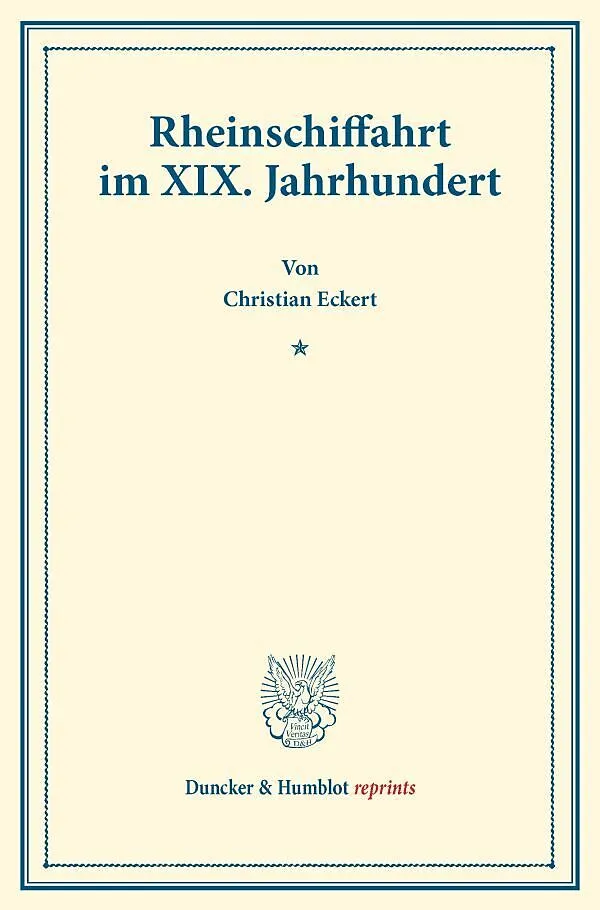Das 1900 erschienene Werk des Mainzer Nationalökonomen Christian Eckert (1874-1952) blickt zurück auf die rasante Entwicklung der Rheinschifffahrt innerhalb des vorangegangenen Jahrhunderts. Den geographischen Fokus seiner wirtschaftsgeschichtlichen Abhandlung...