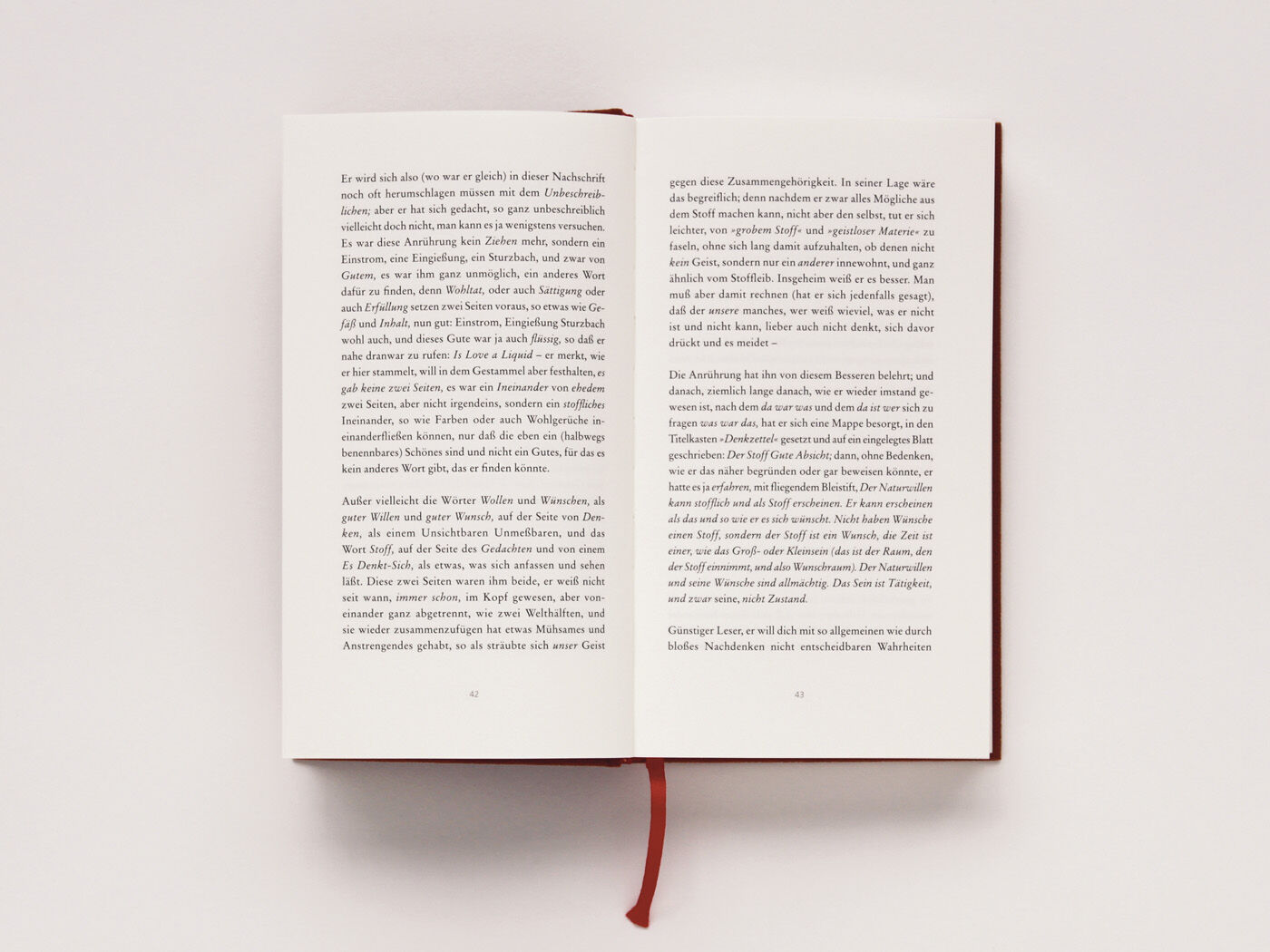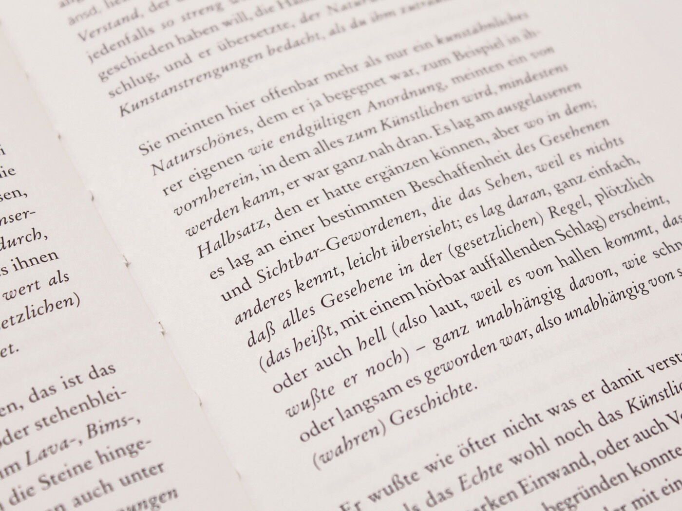 Das stimmt ja nicht, schau mich doch an! Das ruft nicht nur das Schöne, das rufen nicht nur die Steine, der Weidenbusch und der Fluss. Das ruft dieses ganze Buch, das ein großer Solitär in der deutschen Literatur ist und allein schon mit seiner Schönheit und ...