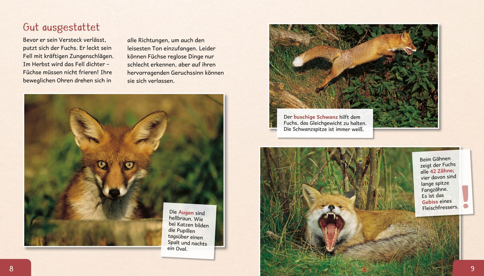 Lieblingstieren ganz nah kommen - mit der großen Tierbibliothek im neuen Design! Kindersachbuch mit erstem Wissen über den Fuchs. Er lebt im Wald und geht erst in der Dämmerung geht er auf die Jagd. Sein ausgezeichneter Geruchssinn und die beweglichen Ohren he...
