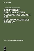 Keine ausführliche Beschreibung für "Das Problem der subjektiven Allgemeingültigkeit des Geschmacksurteils bei Kant" verfügbar. Klappentext In der Reihe werden herausragende monographische Untersuchungen und Sammelbände zu allen Aspekten der Phi...