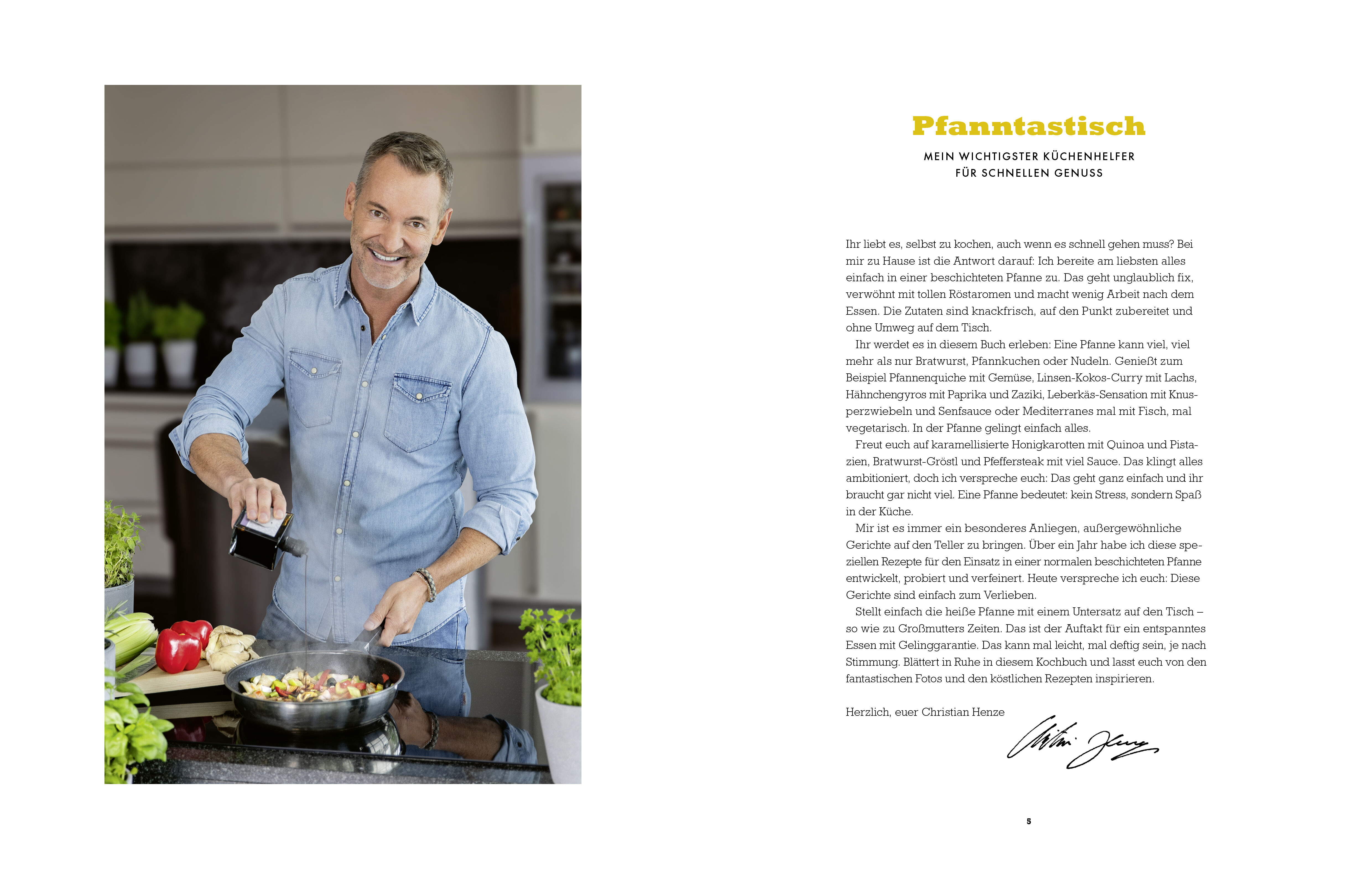 Schnelle Pfannengerichte mit Röstaromen, die glücklich machen! Auch nach Jahrzehnten in der Profigastronomie liebt es der Allgäuer Starkoch Christian Henze noch, täglich selbst zu Hause zu kochen. Sein erster Griff, so verrät er, geht dabei immer zur Pfanne. ...