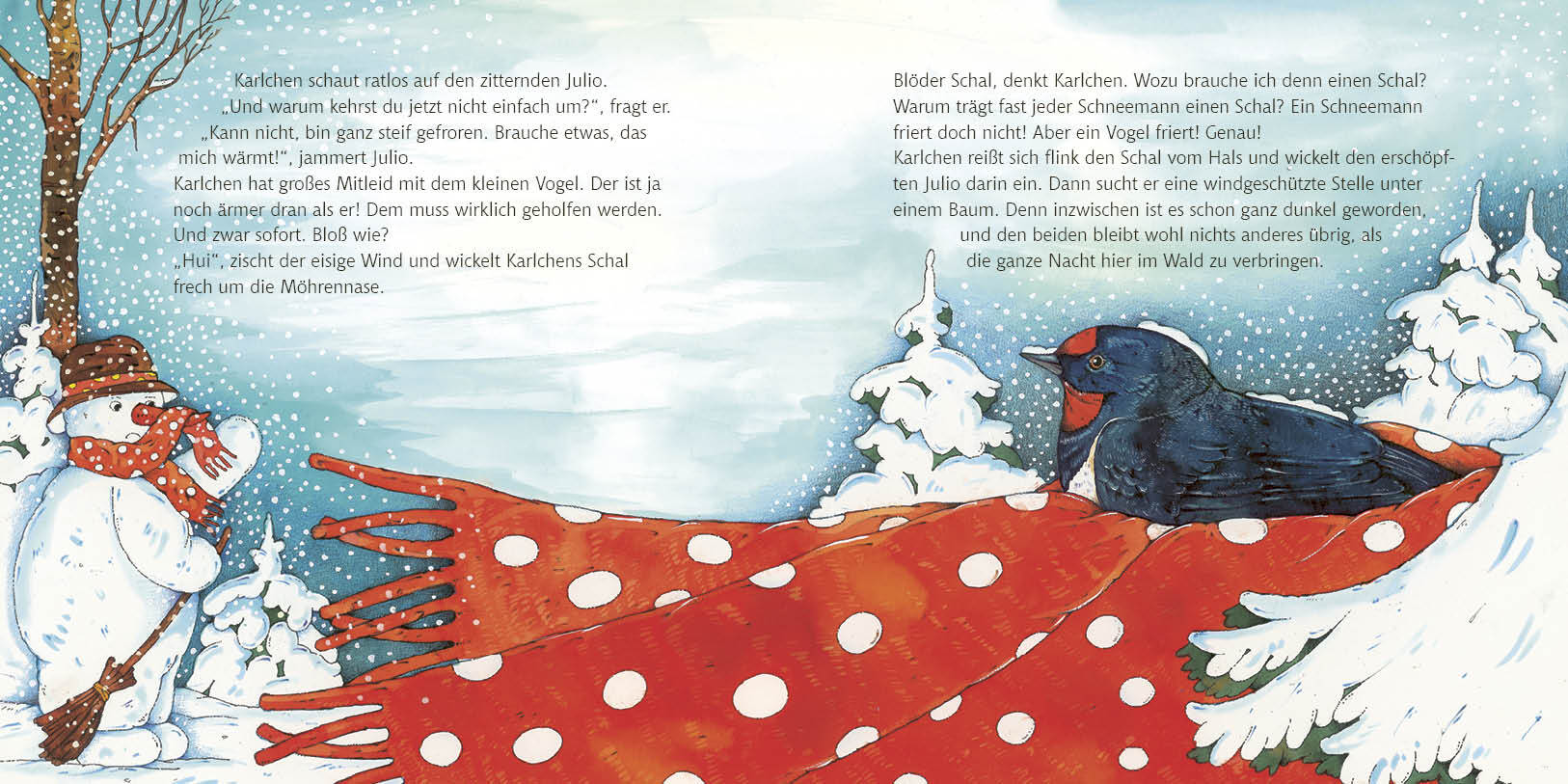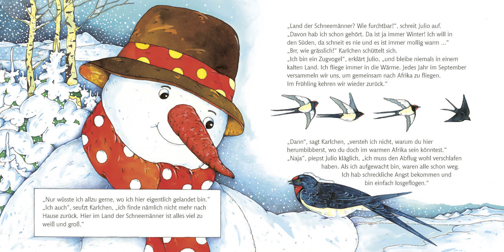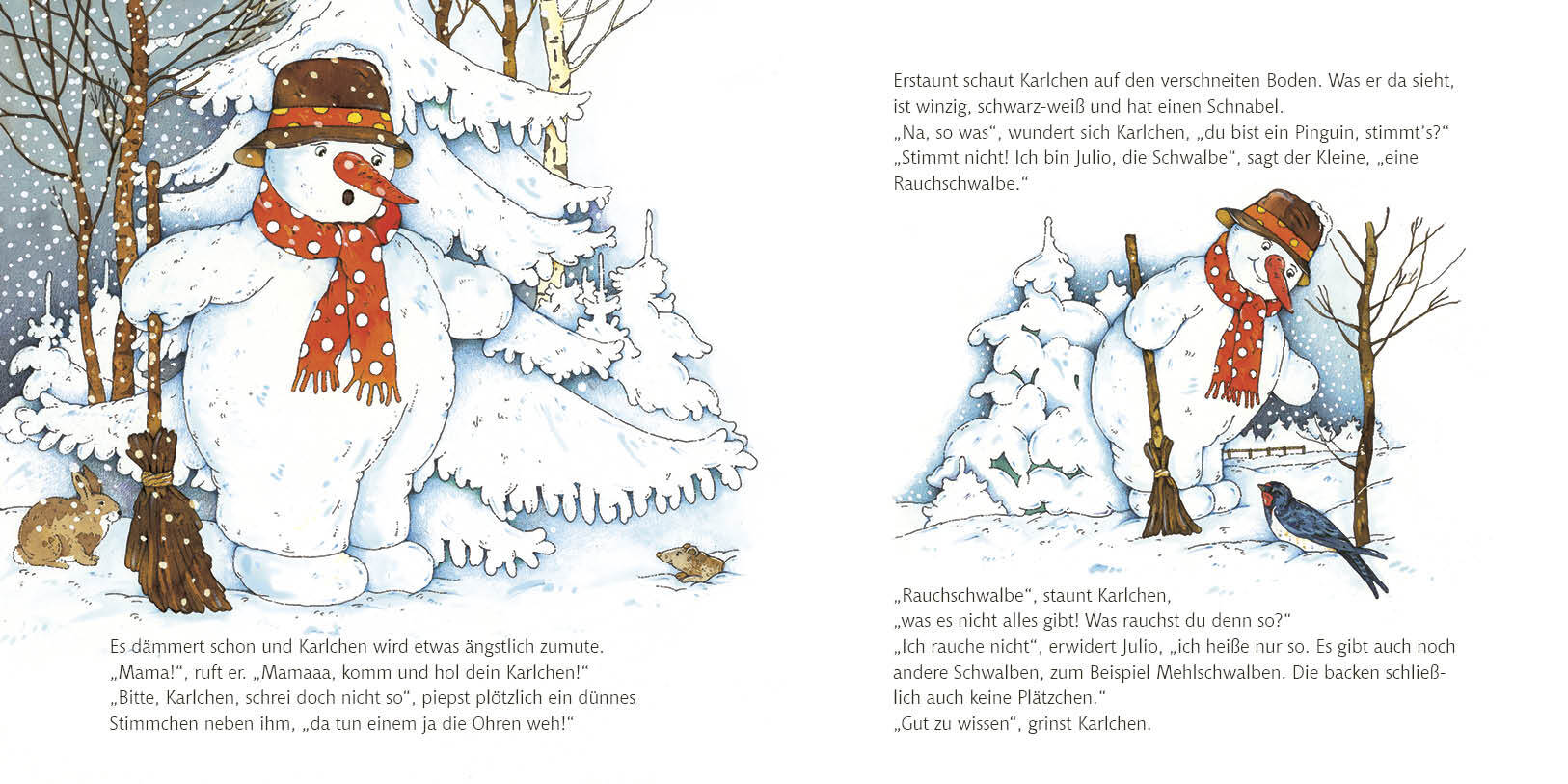 Der Schneemann mit dem warmen Herzen: Eine Wintergeschichte im Bilderbuch. Freundschaft beginnt meistens dort, wo die Hilfsbereitschaft groß ist: Eigentlich steckt Schneemann Karlchen ja selbst in der Klemme, denn er findet den Weg zurück nach Hause nicht mehr...
