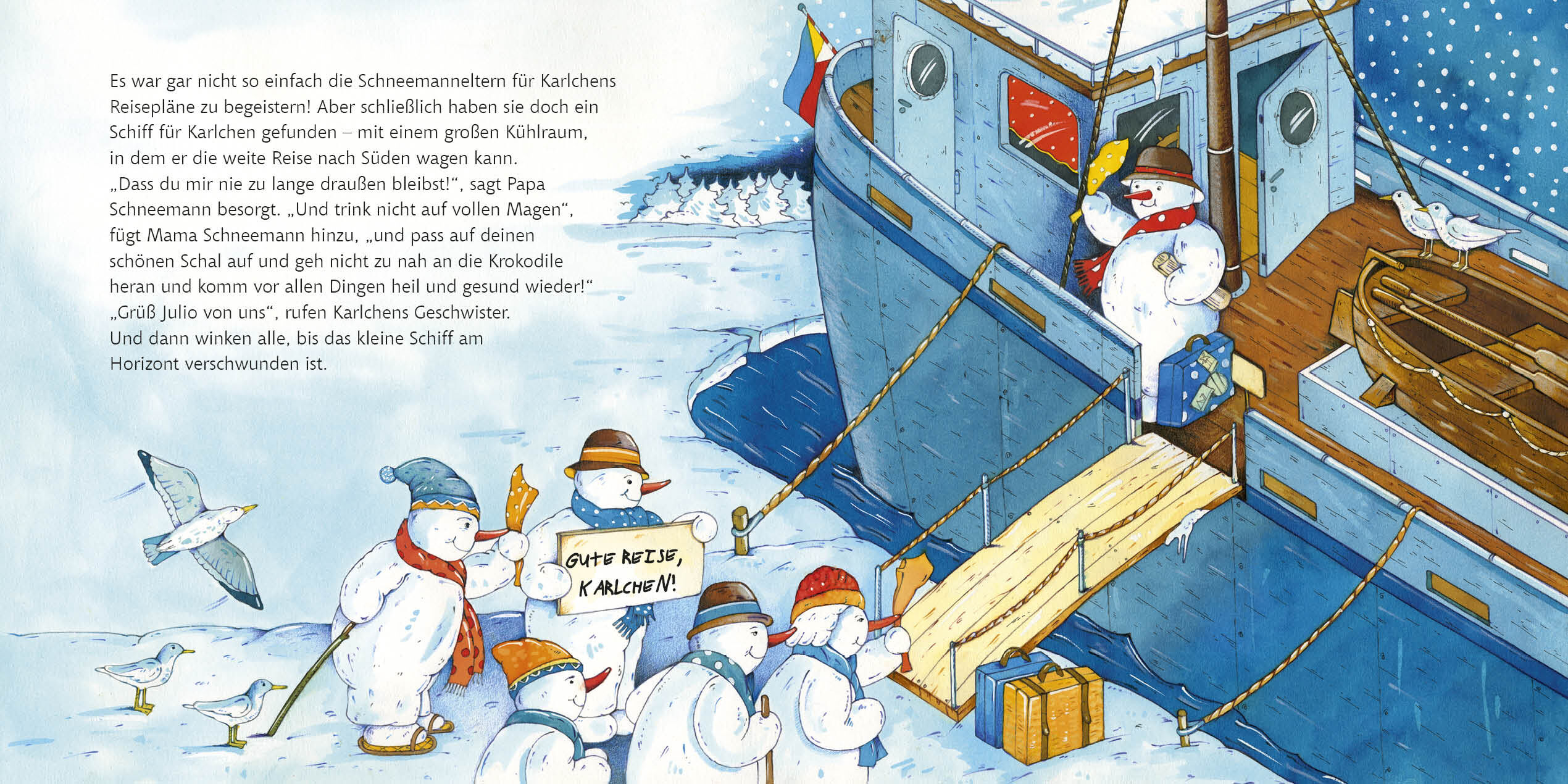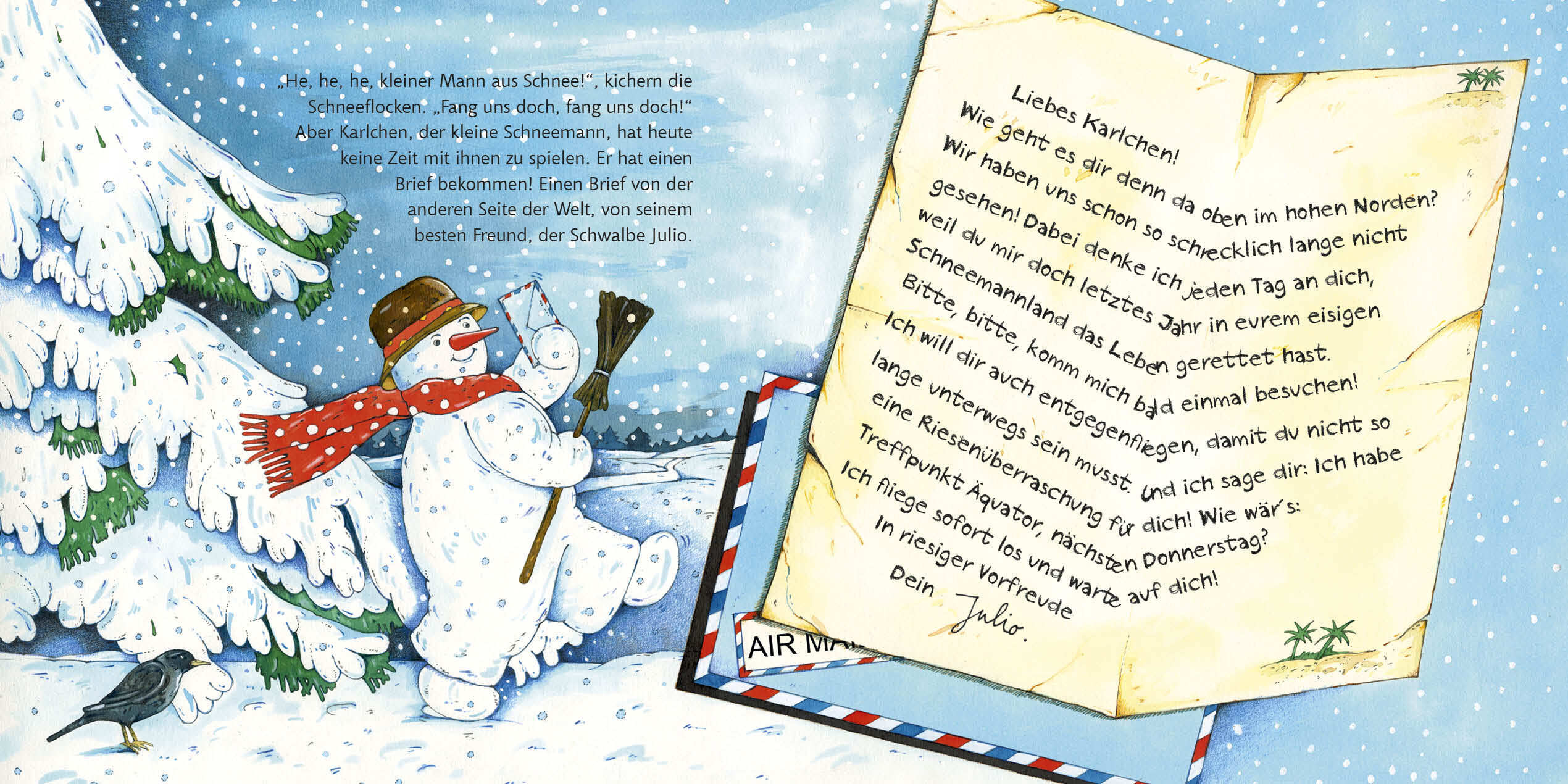 Stell Dir vor, Du bist ein Schneemann und willst reisen! Karlchen wohnt mit seiner Familie am Nordpol. Dort ist es sehr kalt. Genau richtig für ihn! Als er eines Tages einen Brief von seinem Freund, der Schwalbe Julio, erhält, beschließt er, ihn zu besuchen. A...