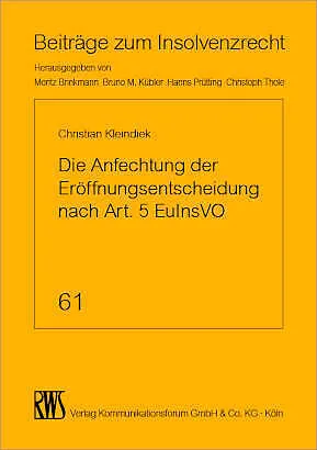 Die Neufassung der Europäischen Insolvenzverordnung (EuInsVO) gewährt in Art. 5 dem Schuldner und jedem Gläubiger das Recht, die internationale Zuständigkeit zur Eröffnung eines Hauptinsolvenzverfahrens gerichtlich überprüfen zu lassen. Der europäische Gesetzg...
