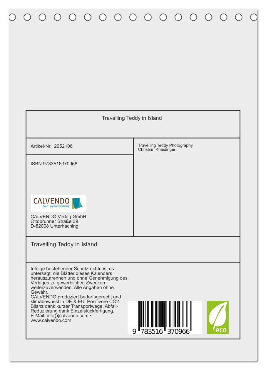 Travelling Teddy in Island (Tischkalender 2026 DIN A5 hoch), CALVENDO Monatskalender