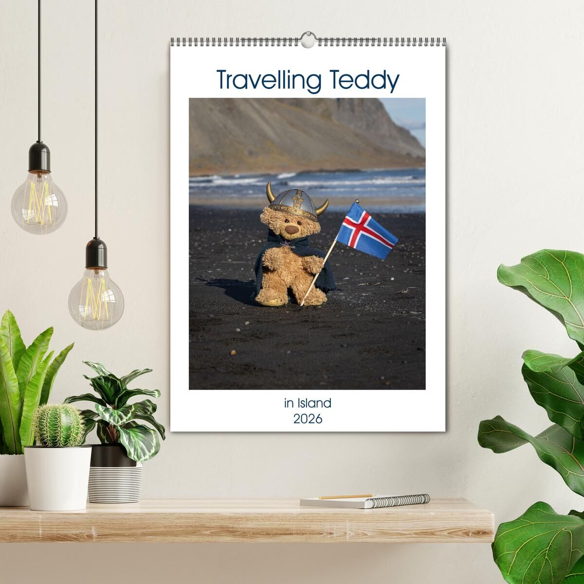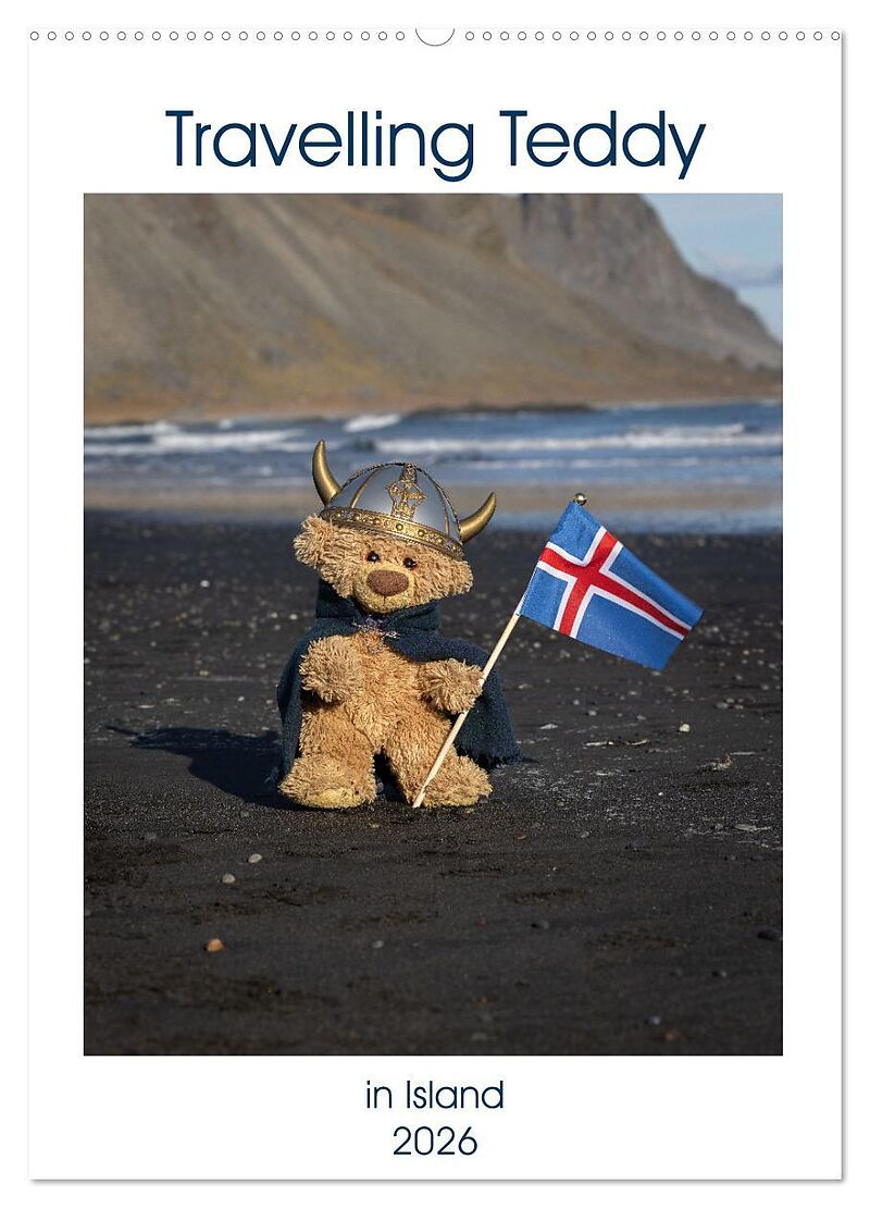 Travelling Teddy in Island (Wandkalender 2026 DIN A2 hoch), CALVENDO Monatskalender