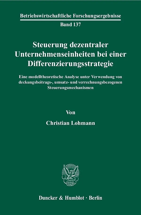 Die Steuerung von dezentralen Unternehmenseinheiten gewährleistet, dass trotz delegierter Entscheidungskompetenzen übergreifende Aufgaben erfüllt und Unternehmensziele erreicht werden. Für eine zweck- und zielgerichtete Unternehmenssteuerung sind hierfür die E...