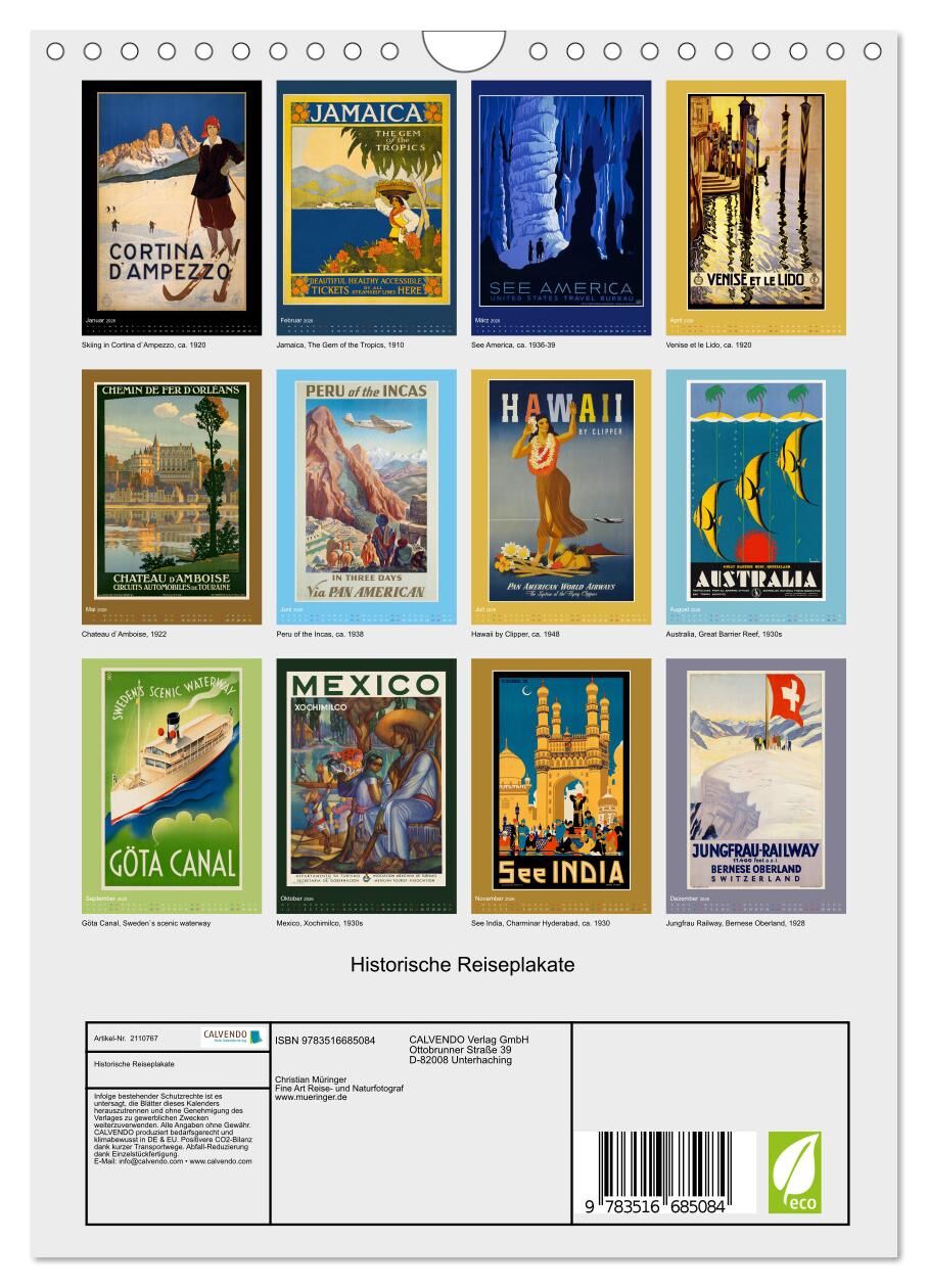 Versetzen Sie sich zurück in die Zeit vor 80 oder 100 Jahren, als Reisen noch exklusiv und manchmal auch ein Abenteuer war. In diesen Zeiten wurde die Werbung für Reiseziele von großen Künstlern und Designern gestaltet. Der Kalender zeigt Ihnen die schönsten R...